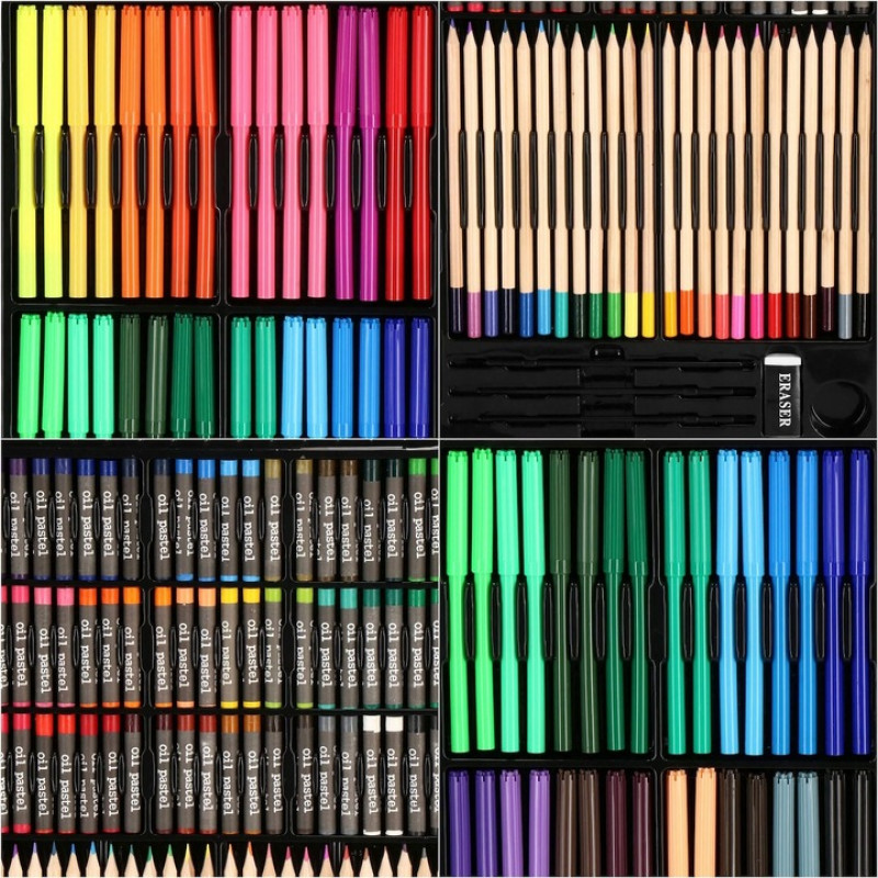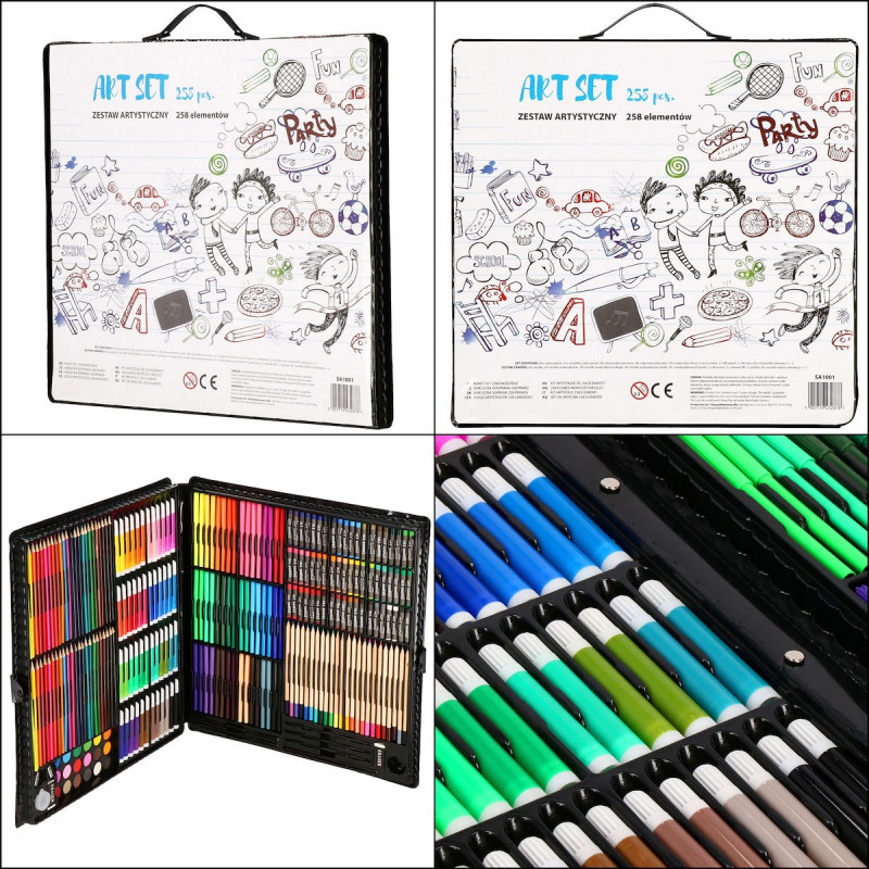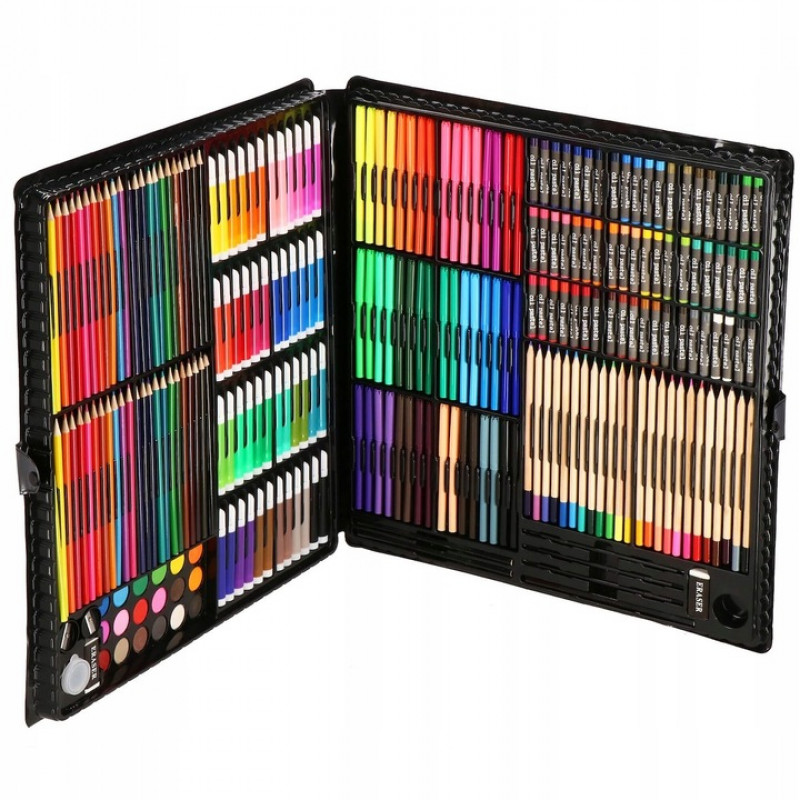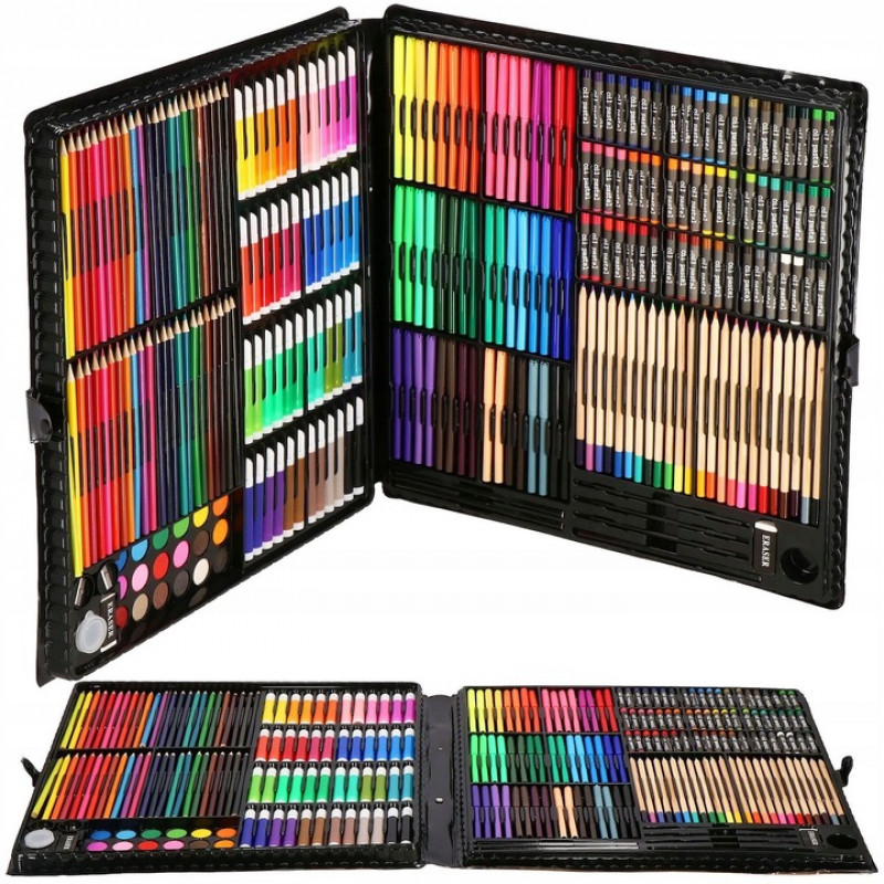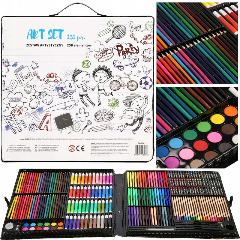 Inchidere usoara si sigura cu buton Setul de arta este complet ascuns in valiza, care a fost produsa in mod estetic. Copilul mic o poate lua cu incredere cu el oriunde cu ajutorul manerului de transport. La gradinita, la bunici, in vacanta sau chiar in aer liber. Fiecare parinte va observa ca, la orice varsta, un copil deseneaza diferit, are o mai buna prindere a creionului sau este mai fluent cu pensula. Cu setul de arta, puteti sustine dezvoltarea copilului dumneavoastra incepand cu varsta de 3 ani! Mai mult, crearea de desene il va ajuta, de asemenea, pe micutul dvs. sa isi gestioneze mai bine emotiile, transferandu-le pe o bucata de hartie.
