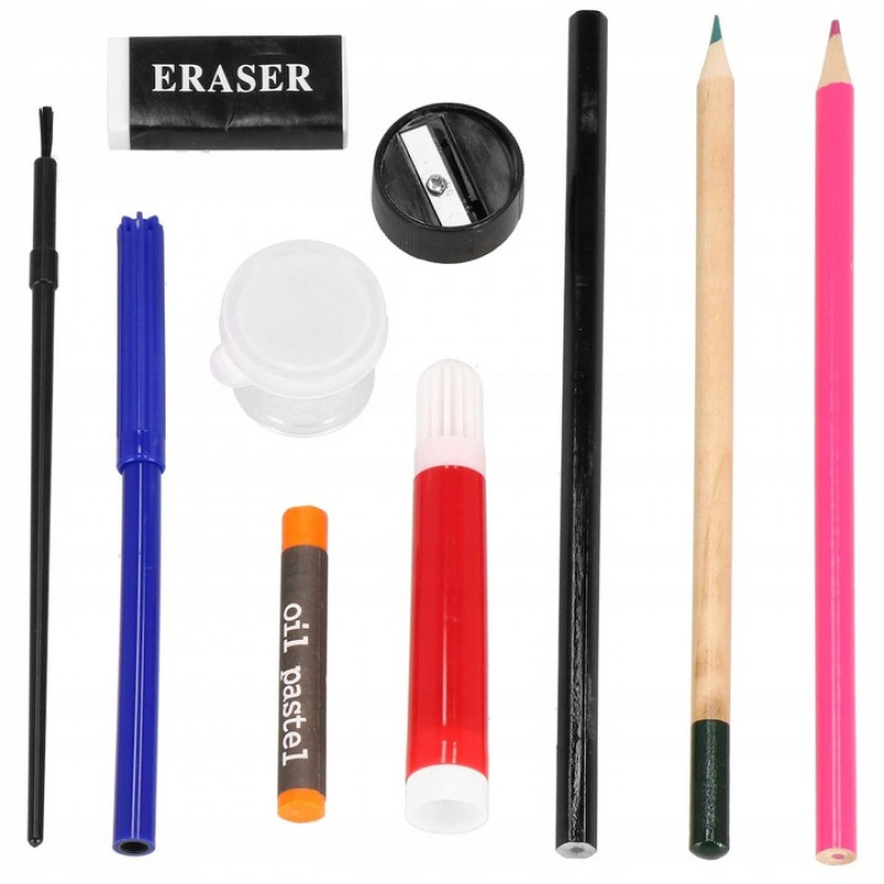 Setul include mai multe tipuri de accesorii pentru desen si pictura