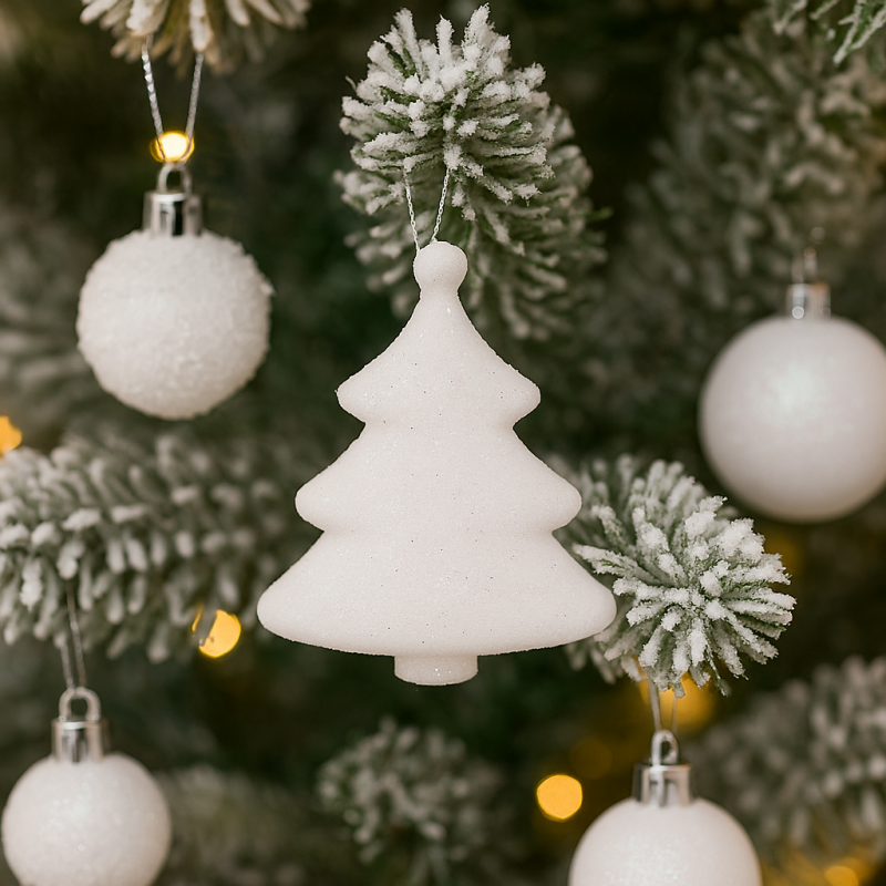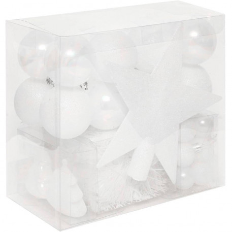 Scurta descriere Set complet de decoratiuni albe pentru bradul de Craciun, conceput pentru a aduce un aspect elegant si luminos in locuinta. Include globuri in doua dimensiuni, o ghirlanda, un varf de brad si mini brazi decorativi. Ideal pentru un decor de sarbatoare armonios si rafinat.