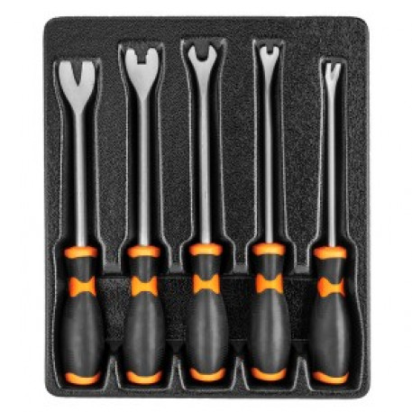 Set extractor tapiterie Neo 11-825 . Set 5 piese, permite dezasamblarea tapiteriei fara a o deteriora, fabricate din otel, maner ergonomic din plastic si cauciuc.