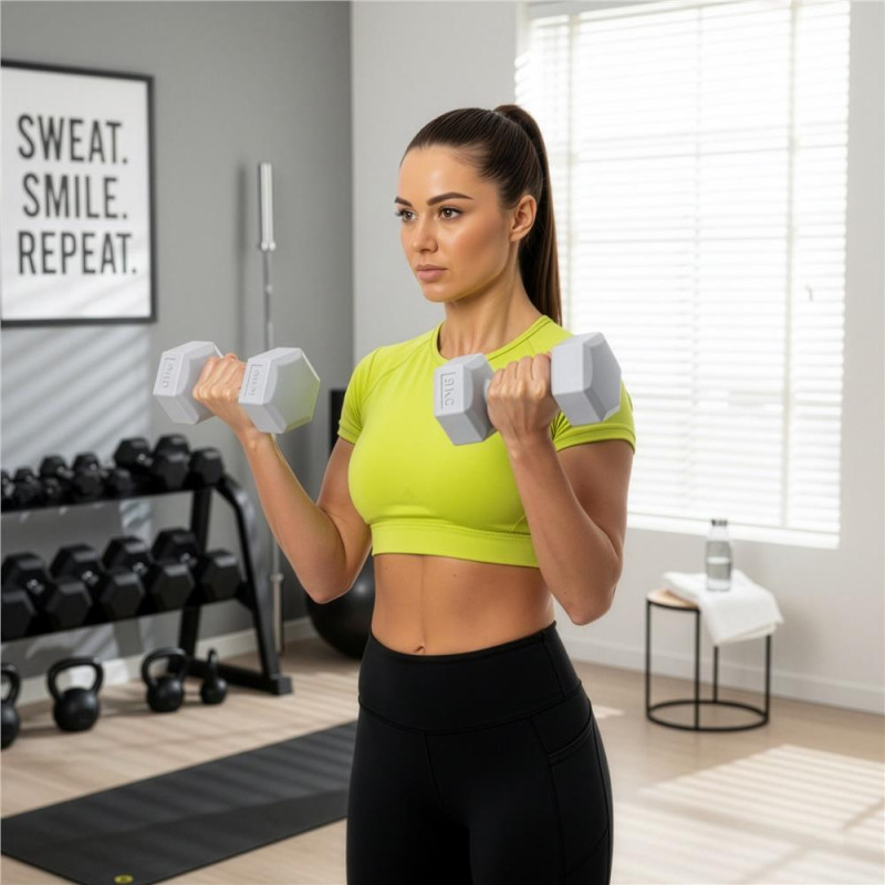 Scurta descriere Setul de gantere hex de 2x3 kg este ideal pentru antrenamente de tonifiere si fitness acasa. Forma hexagonala asigura stabilitate pe sol, iar designul ergonomic ofera o prindere confortabila in timpul exercitiilor. Perfect pentru exercitii zilnice, dezvoltarea fortei si mentinerea unei forme fizice optime.