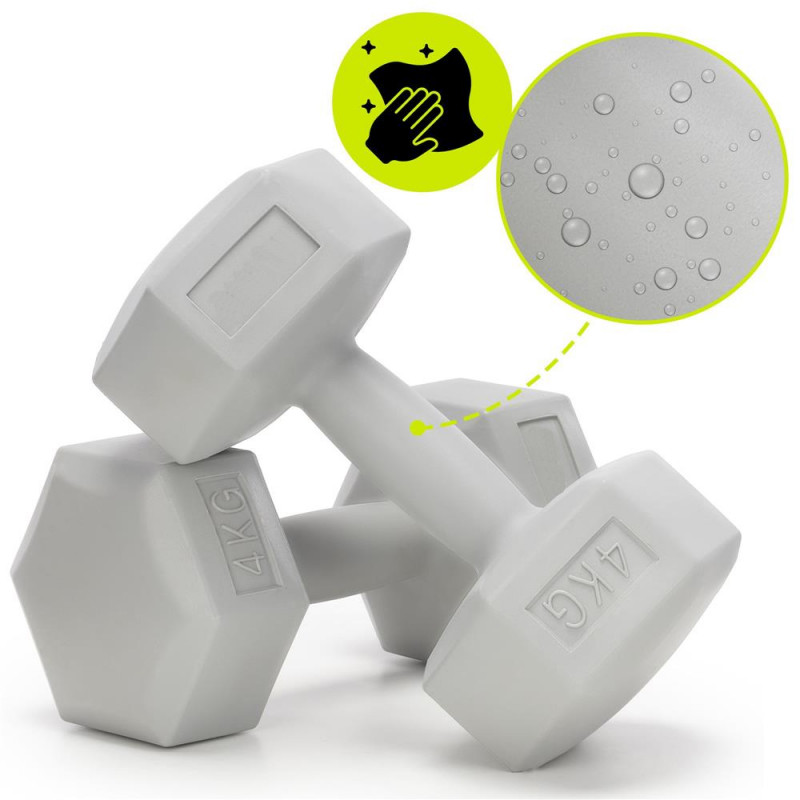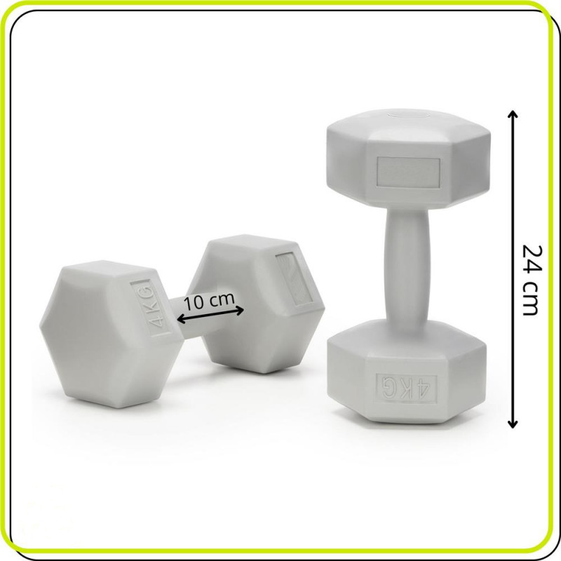 Scurta descriere Set de gantere hexagonale, ideale pentru antrenamente de forta si tonifiere avansata. Forma hexagonala ofera stabilitate si previne rostogolirea, iar suprafata din PP este rezistenta la uzura si usor de curatat. Greutatea de 4 kg per bucata este potrivita pentru exercitii mai intense, atat acasa, cat si la sala.