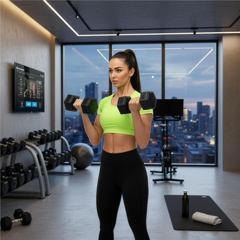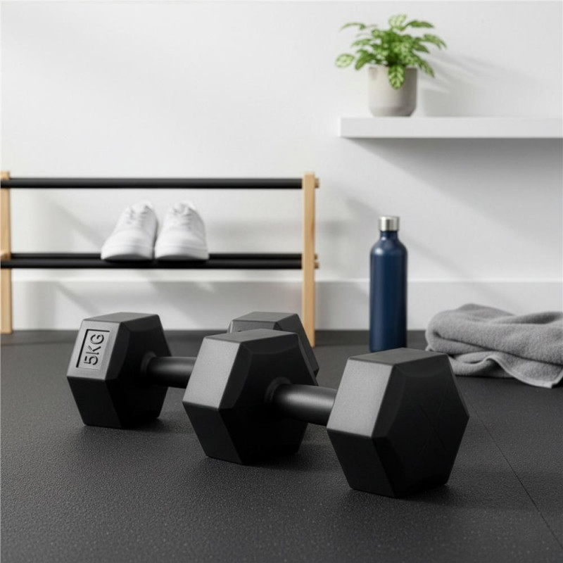 Scurta descriere Set de gantere hexagonale, potrivite pentru antrenamente intense de forta si tonifiere. Forma hexagonala asigura stabilitate si previne rostogolirea, iar materialul din PP este rezistent si usor de intretinut. Greutatea de 5 kg per bucata este ideala pentru exercitii avansate acasa sau la sala.