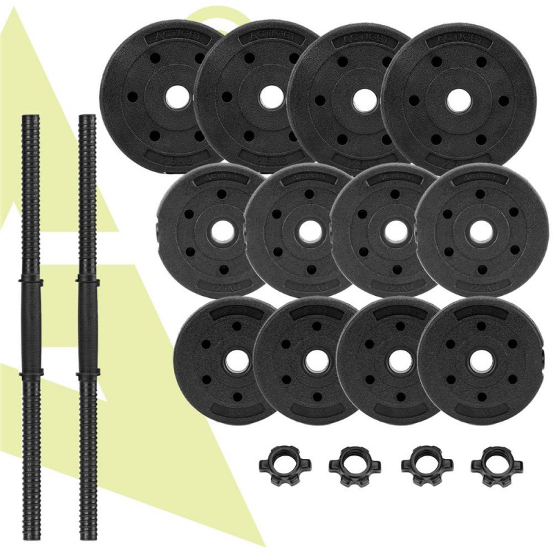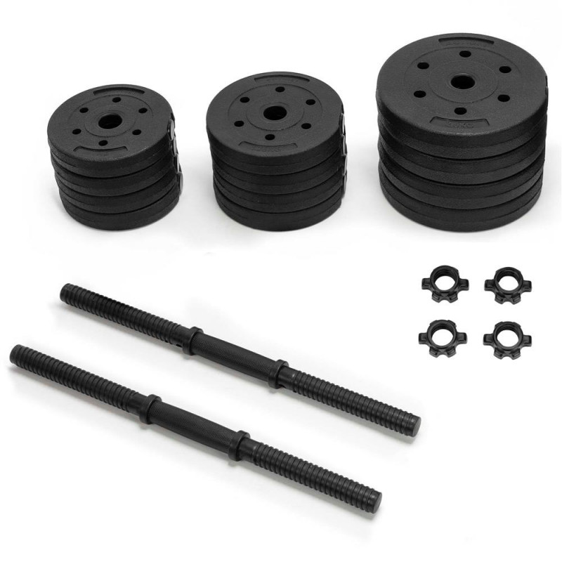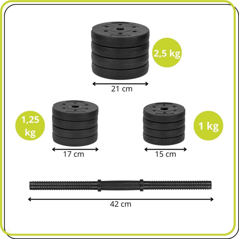 Scurta descriere: Set de gantere reglabile, potrivit pentru antrenamente de forta acasa. Discurile cu invelis din PP reduc zgomotul si protejeaza suprafetele, iar sistemul de prindere filetata asigura fixare sigura in timpul exercitiilor. Ideal pentru exercitii de brate, umeri, piept si spate.