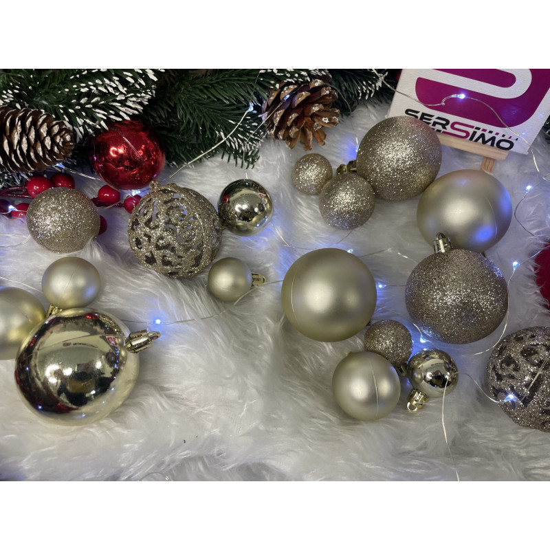 Globurile dintr-un set cu o singura culoare va vor permite sa creati un decor minunat pentru brad. Arata frumos in timpul zilei si dupa intuneric, insotite de iluminat festiv. Setul include snururi care va permit sa agatati globurile rapid si usor in locul dorit. Designul din plastic creste siguranta datorita materialului incasabil. Alegerea lor in locul globurilor de sticla va contribui la siguranta celor mici din casa. Diversele dimensiuni va permit sa creati modele inedite de aranjare a bradului de Craciun.