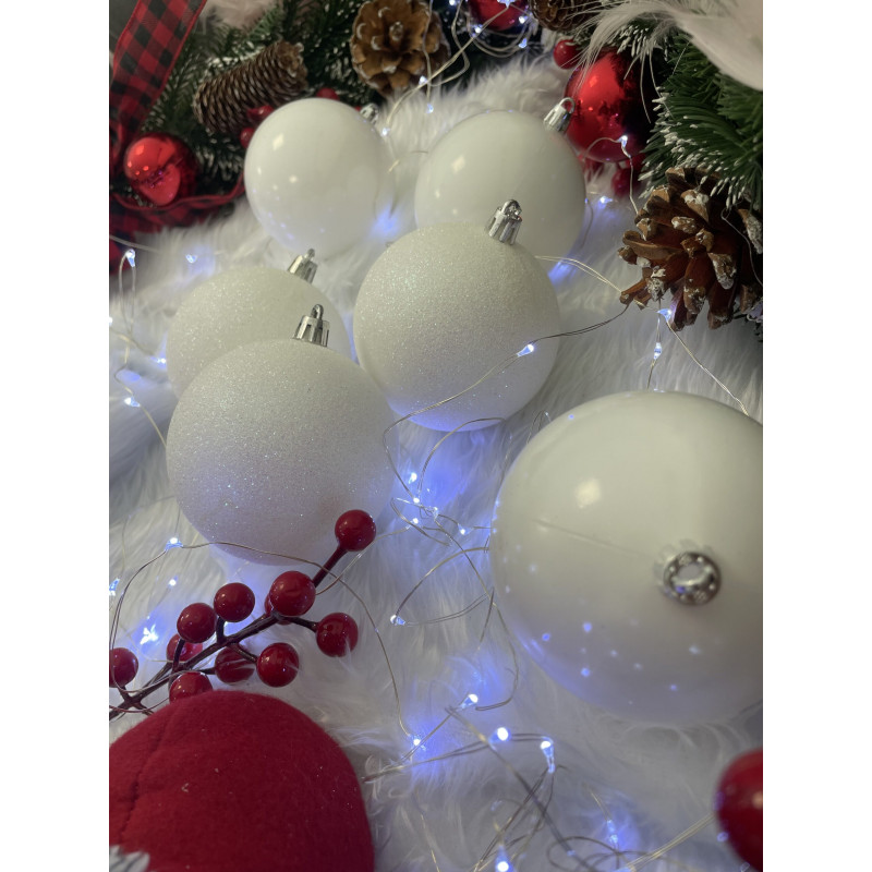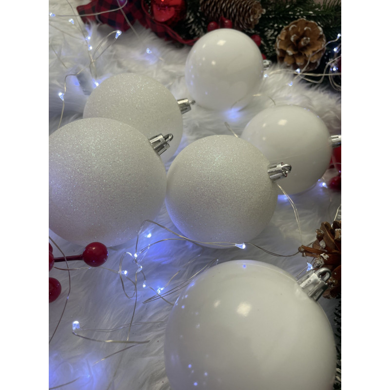 Globurile va vor permite sa creati un decor minunat pentru brad. Arata frumos in timpul zilei si dupa intuneric, insotite de iluminat festiv. Setul include snururi care va permit sa agatati globurile rapid si usor in locul dorit. Designul din plastic creste siguranta datorita materialului incasabil. Alegerea lor in locul globurilor de sticla va contribui la siguranta celor mici din casa. Diversele dimensiuni va permit sa creati modele inedite de aranjare a bradului de Craciun.