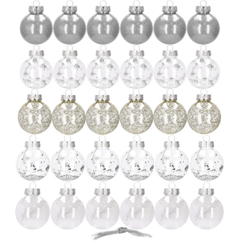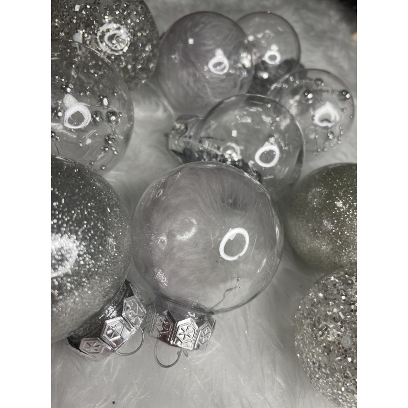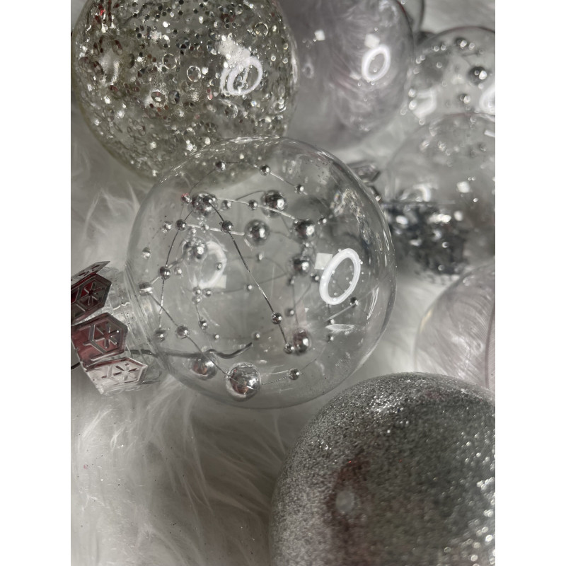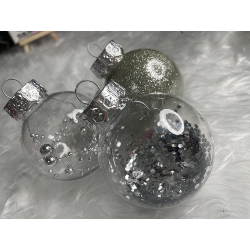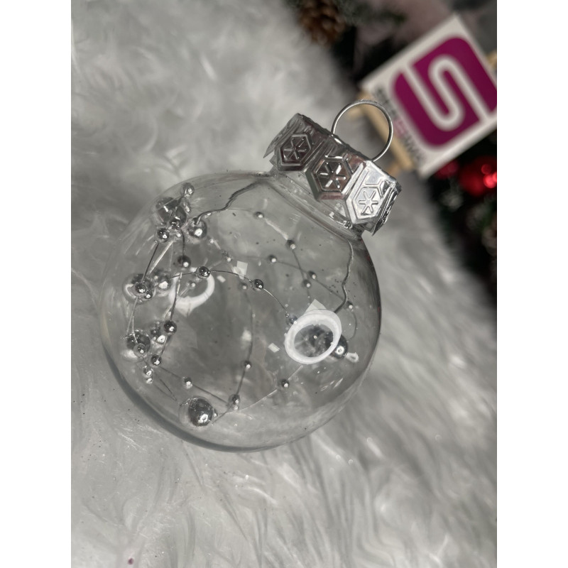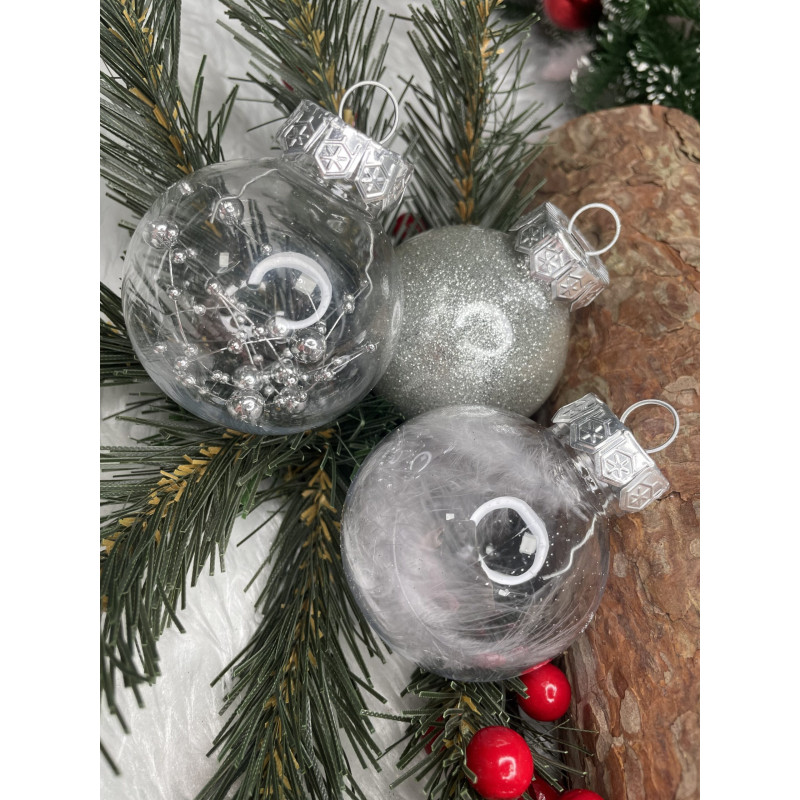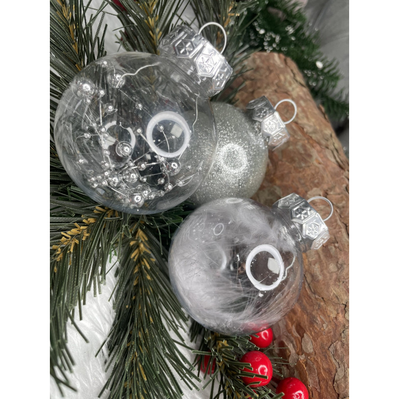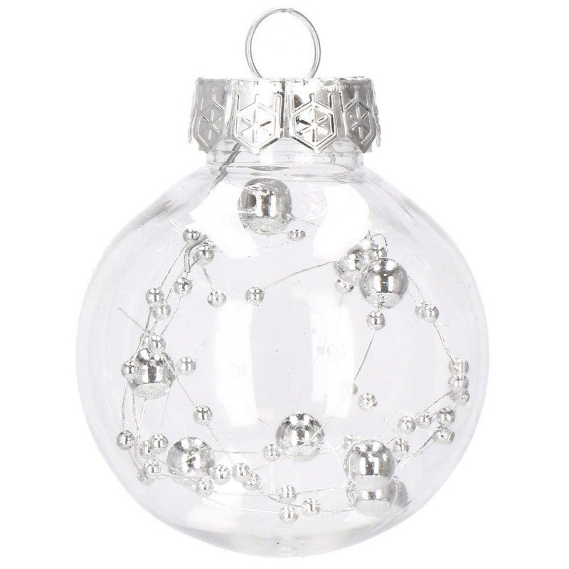Setul include: 6x globulete rotunde transparente umplute cu margele - 6 cm,
