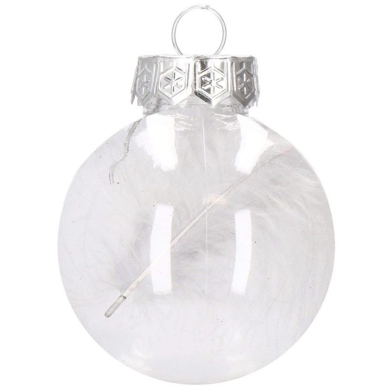 6x globulete rotunde transparente rotunde umplute cu pene - 6 cm Craciunul, ca si intreaga perioada de iarna, este o perioada magica, plina de caldura si de o atmosfera unica, creata datorita unui spectacol de decoratiuni fabuloase si constelatii luminoase incantatoare. Designul din plastic creste siguranta datorita materialului incasabil. Alegerea lor in locul globurilor de sticla va contribui la siguranta celor mici din casa. Globuletele pentru bradul de Craciun arata la fel ca cele din sticla. Datorita suprafetei lor netede ca o oglinda si a finisajului cu sclipici, acestea reflecta lumina in mod fantastic, sporind efectul de decoratiuni sclipitoare si stralucitoare, care aduc in minte asocieri cu un peisaj de iarna rece si inzapezit. Globuletele pentru bradul de Craciun va vor permite sa va decorati casa de Craciun intr-un mod nelimitat.