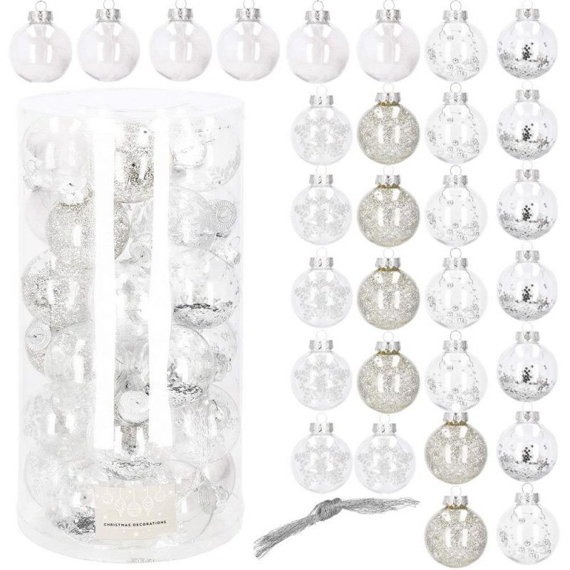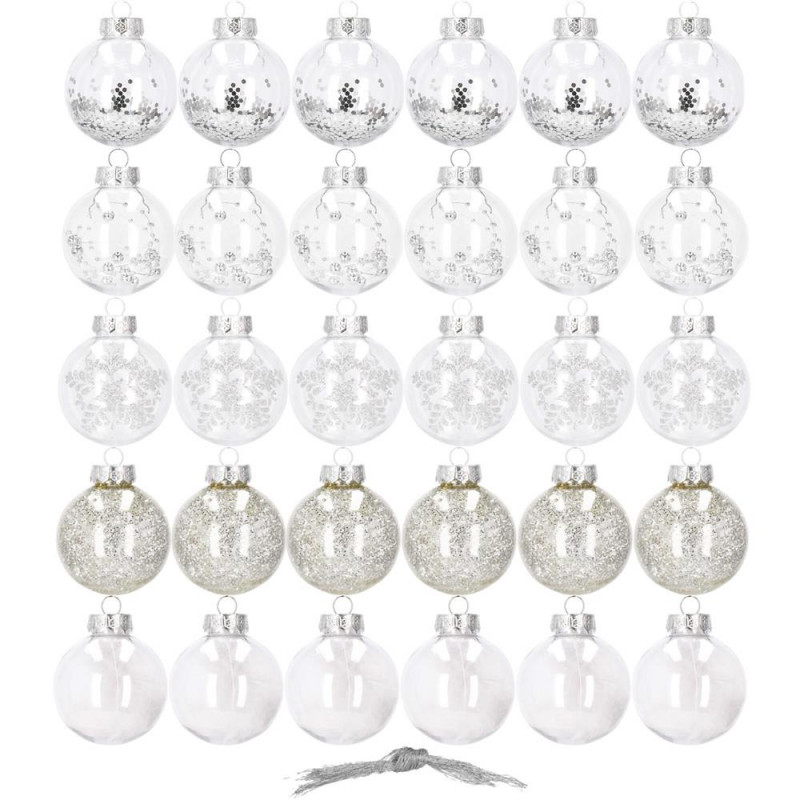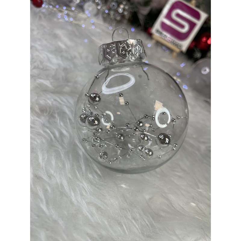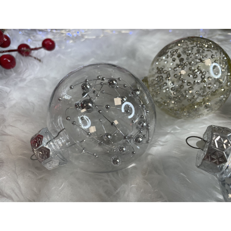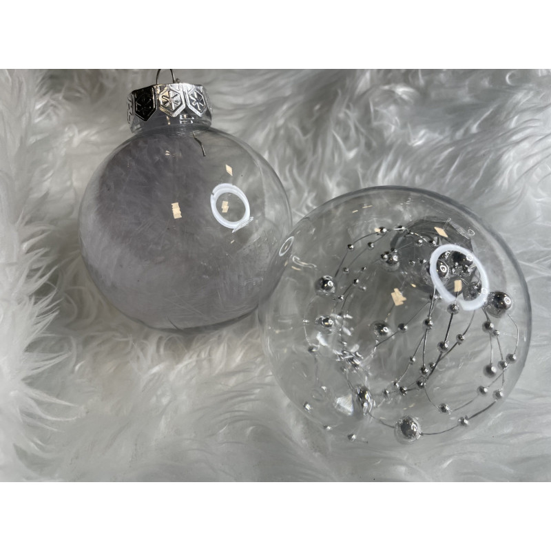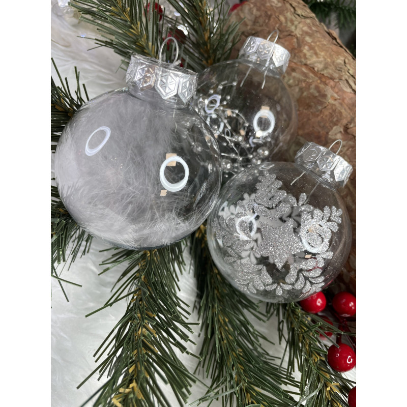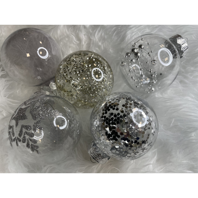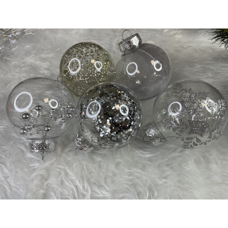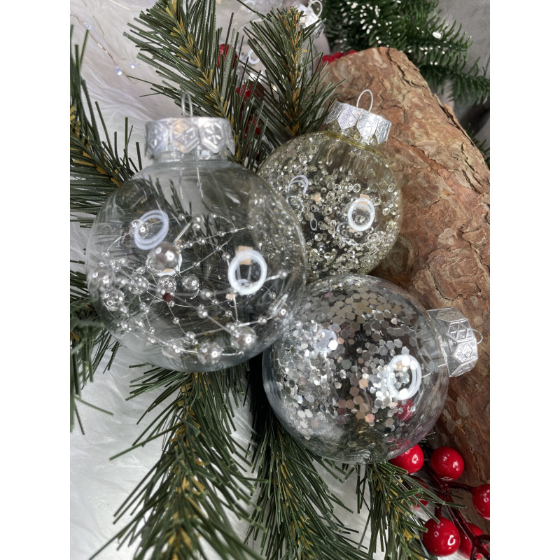 Setul include: 6x globulete rotunde transparente umplute cu margele - 7 cm,