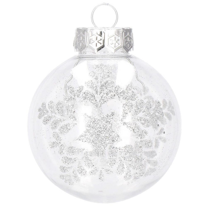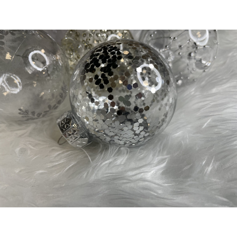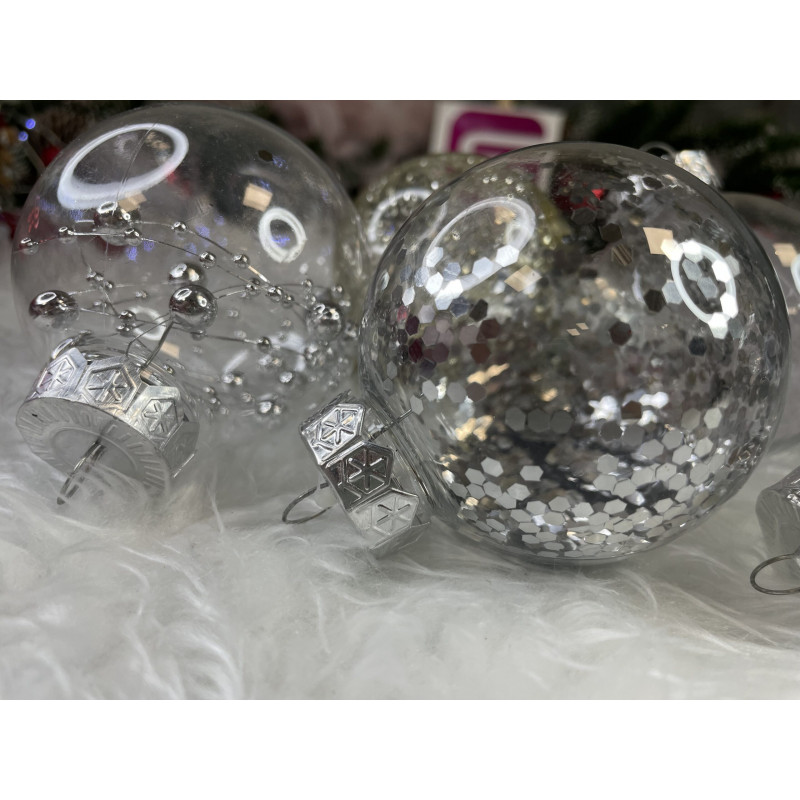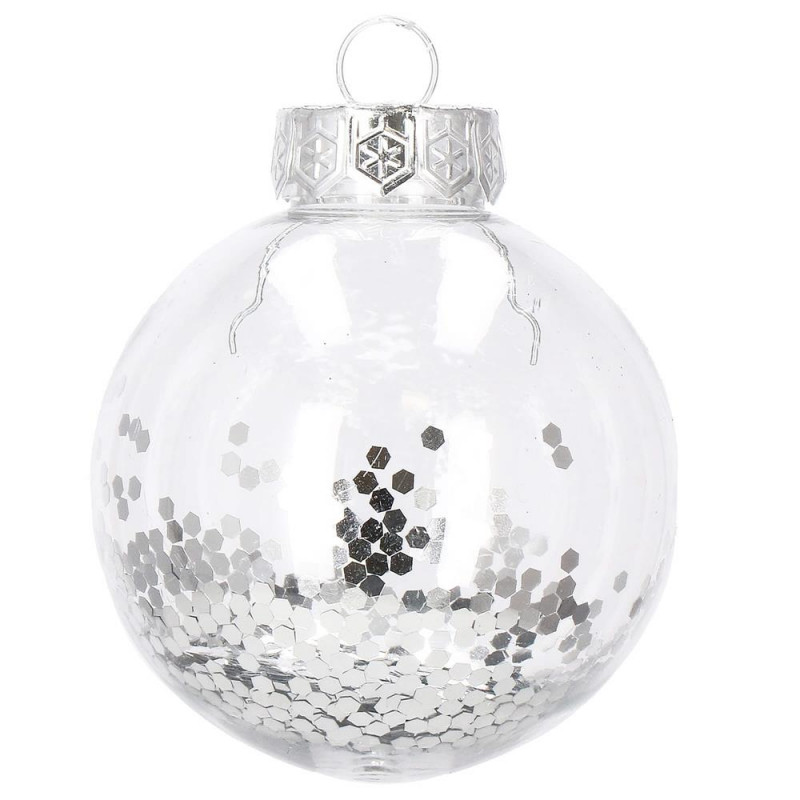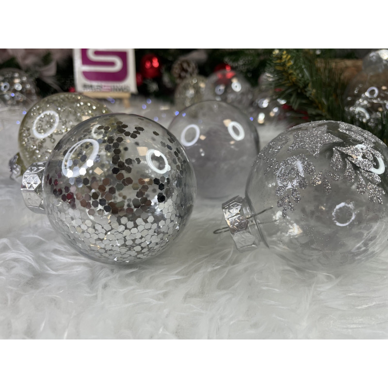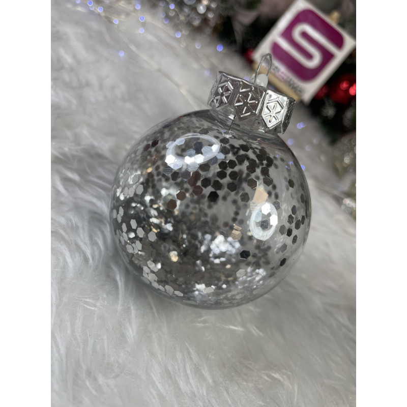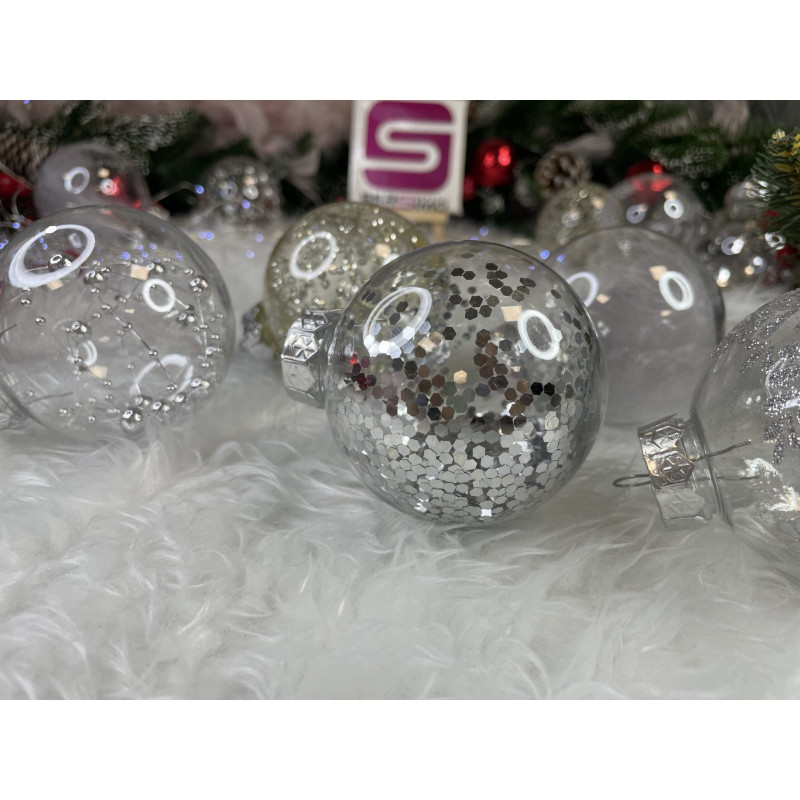 6x globulete rotunde transparente umplute cu sclipici - 7 cm,