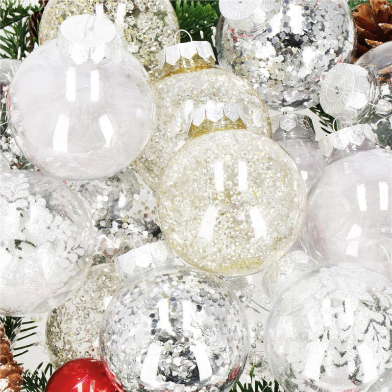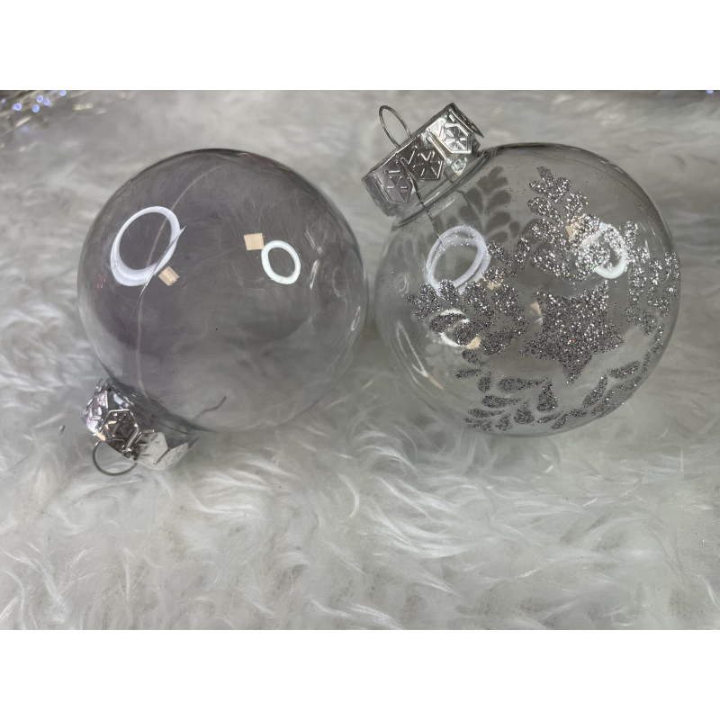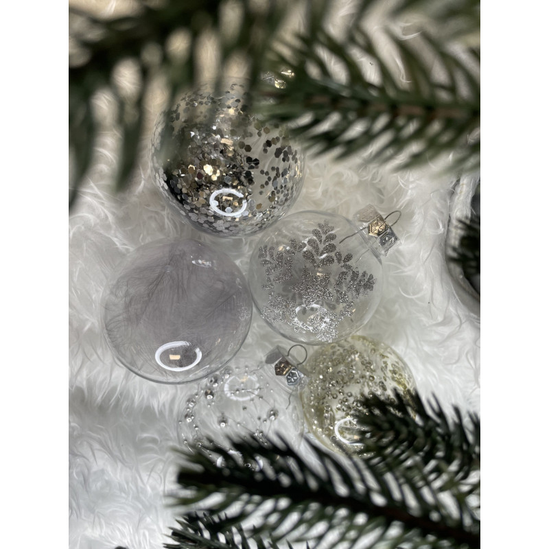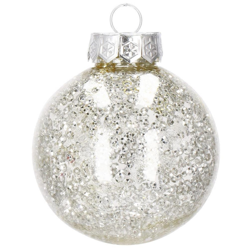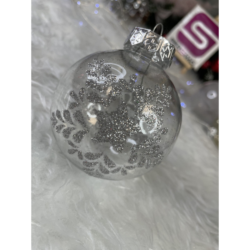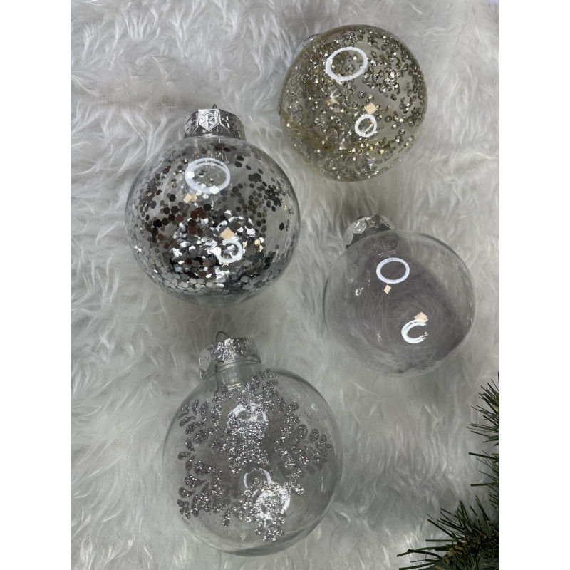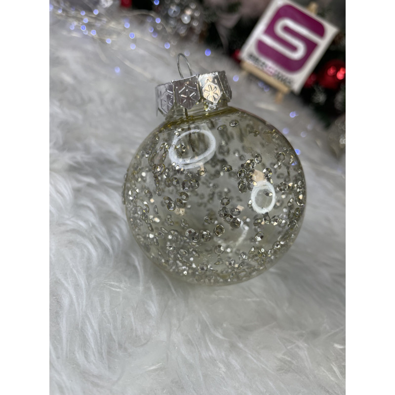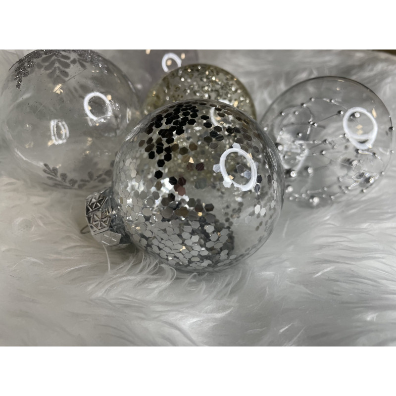 6x globulete rotunde transparente umplute cu sclipici - 7 cm,