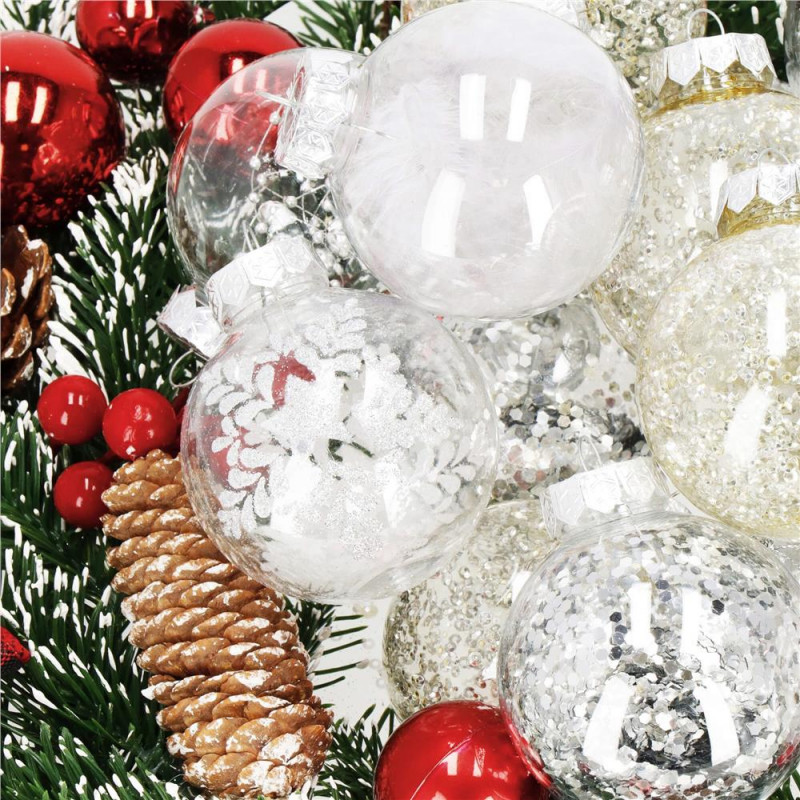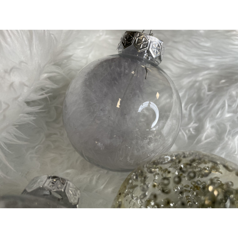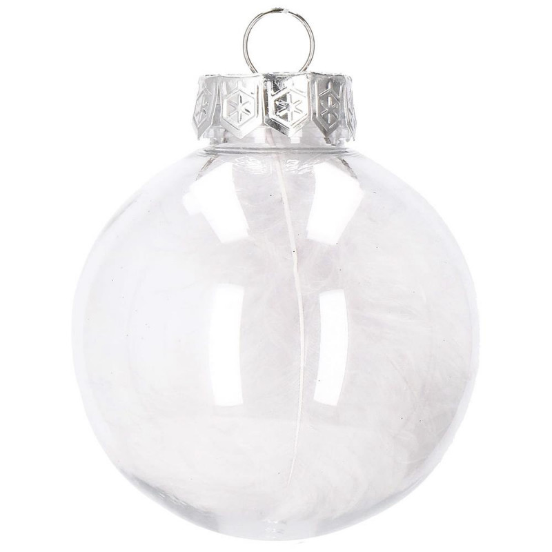 6x globulete rotunde transparente rotunde umplute cu pene - 7 cm Craciunul, ca si intreaga perioada de iarna, este o perioada magica, plina de caldura si de o atmosfera unica, creata datorita unui spectacol de decoratiuni fabuloase si constelatii luminoase incantatoare. Designul din plastic creste siguranta datorita materialului incasabil. Alegerea lor in locul globurilor de sticla va contribui la siguranta celor mici din casa. Globuletele pentru bradul de Craciun arata la fel ca cele din sticla. Datorita suprafetei lor netede ca o oglinda si a finisajului cu sclipici, acestea reflecta lumina in mod fantastic, sporind efectul de decoratiuni sclipitoare si stralucitoare, care aduc in minte asocieri cu un peisaj de iarna rece si inzapezit. Globuletele pentru bradul de Craciun va vor permite sa va decorati casa de Craciun intr-un mod nelimitat.