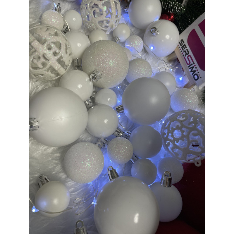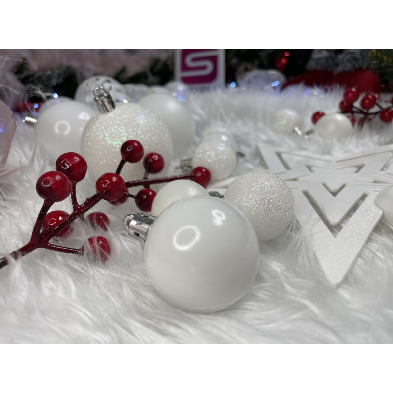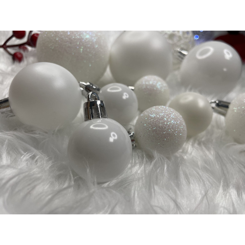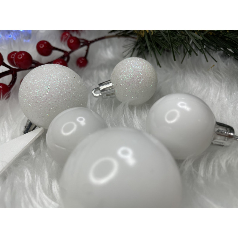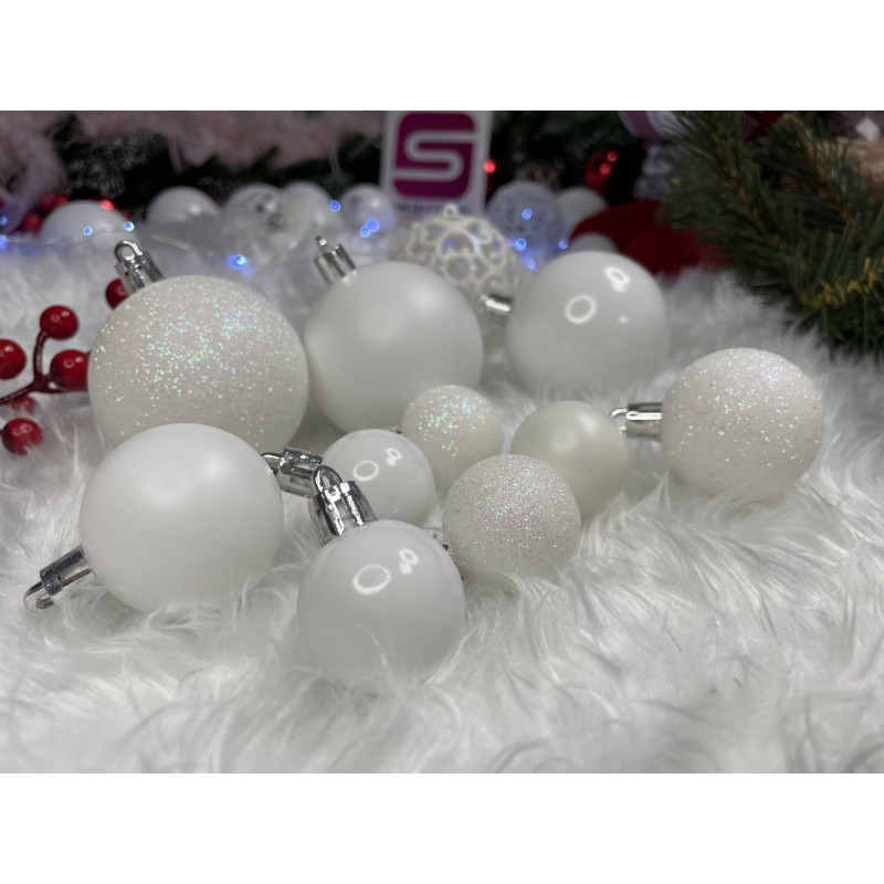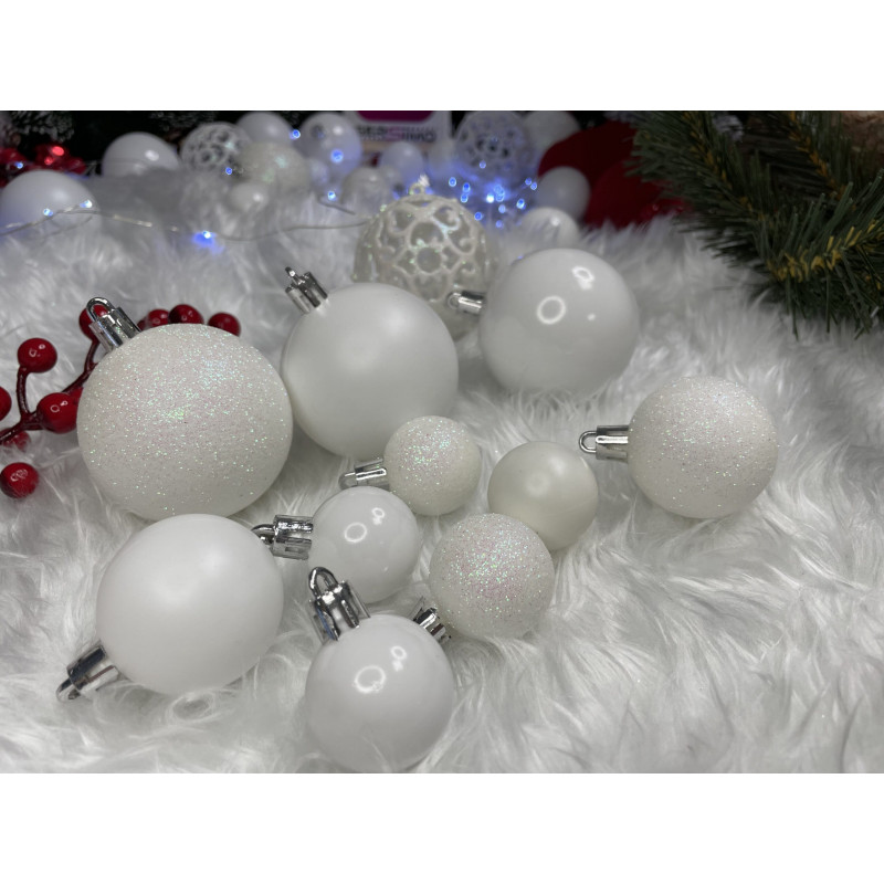 Globurile si decoratiunile dintr-un set cu o singura culoare va vor permite sa creati un decor minunat pentru brad. Arata frumos in timpul zilei si dupa intuneric, insotite de iluminat festiv. Setul include snururi care va permit sa agatati globurile rapid si usor in locul dorit. Designul din plastic creste siguranta datorita materialului incasabil. Alegerea lor in locul globurilor de sticla va contribui la siguranta celor mici din casa. Diversele dimensiuni va permit sa creati modele inedite de aranjare a bradului de Craciun.