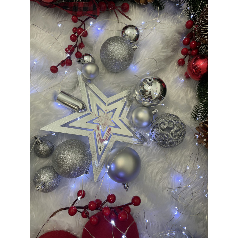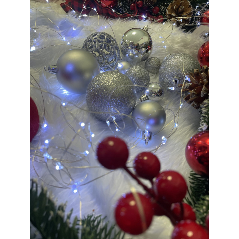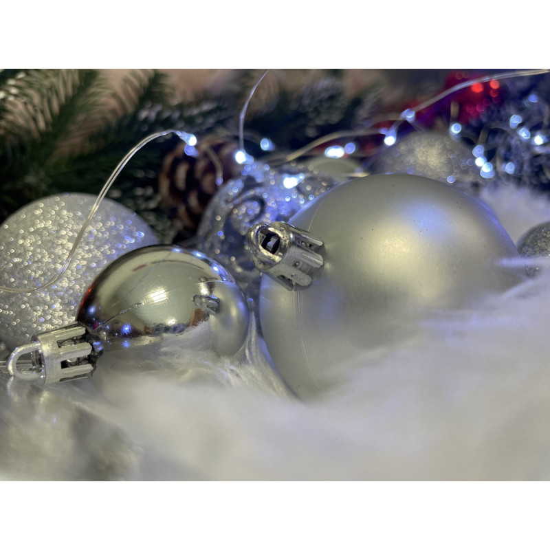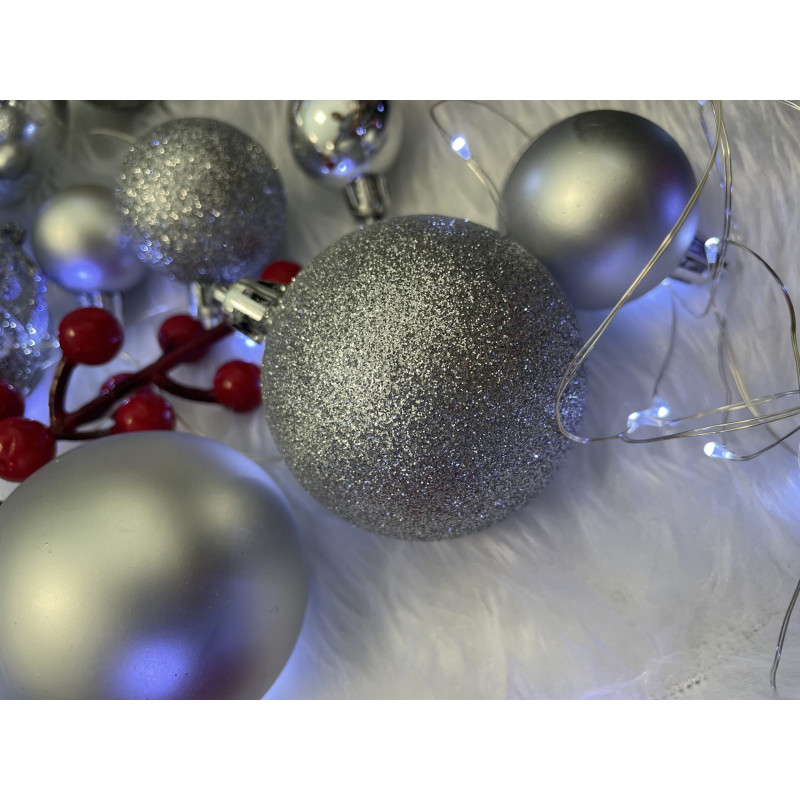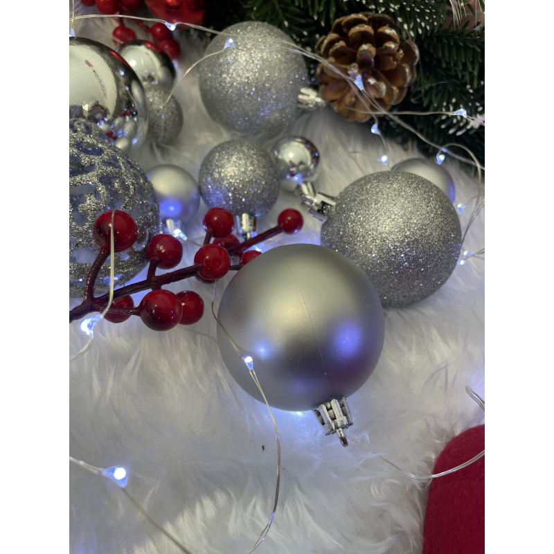 Globurile si decoratiunile dintr-un set cu o singura culoare va vor permite sa creati un decor minunat pentru brad. Arata frumos in timpul zilei si dupa intuneric, insotite de iluminat festiv. Setul include snururi care va permit sa agatati globurile rapid si usor in locul dorit. Diversele dimensiuni va permit sa creati modele inedite de aranjare a bradului de Craciun.