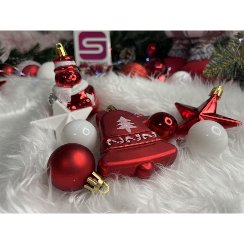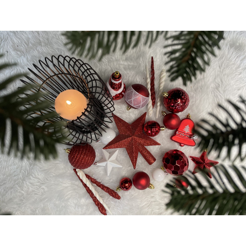 Globurile si decoratiunile dintr-un set cu o singura culoare va vor permite sa creati un decor minunat pentru brad. Arata frumos in timpul zilei si dupa intuneric, insotite de iluminat festiv. Setul include snururi care va permit sa agatati globurile rapid si usor in locul dorit. Designul din plastic creste siguranta datorita materialului incasabil. Alegerea lor in locul globurilor de sticla va contribui la siguranta celor mici din casa. Diversele dimensiuni va permit sa creati modele inedite de aranjare a bradului de Craciun.