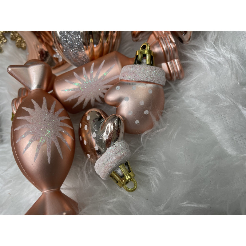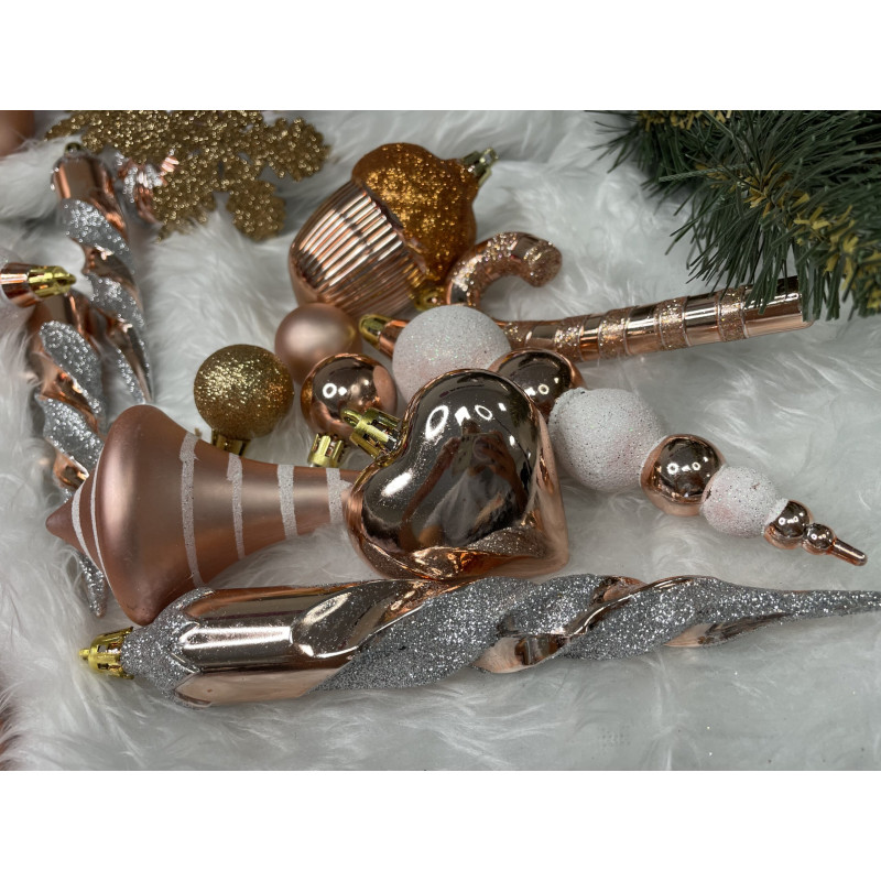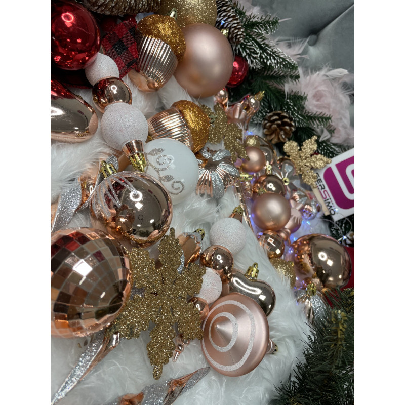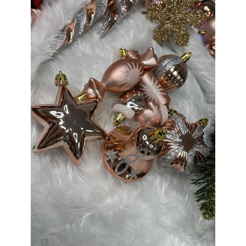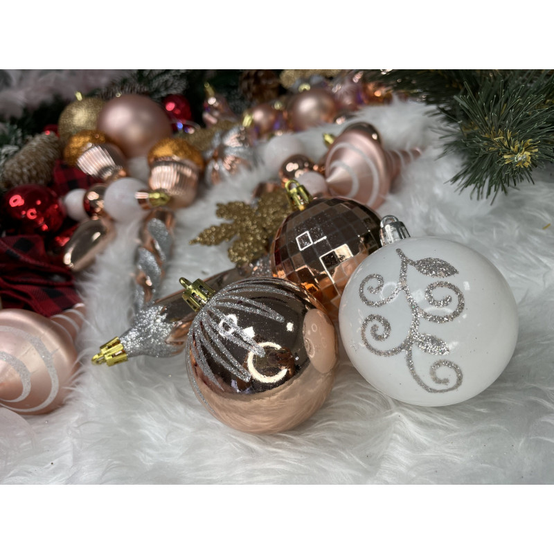 Globurile si decoratiunile dintr-un set cu o singura culoare va vor permite sa creati un decor minunat pentru brad. Arata frumos in timpul zilei si dupa intuneric, insotite de iluminat festiv. Setul include snururi care va permit sa agatati globurile rapid si usor in locul dorit. Designul din plastic creste siguranta datorita materialului incasabil. Alegerea lor in locul globurilor de sticla va contribui la siguranta celor mici din casa. Diversele dimensiuni va permit sa creati modele inedite de aranjare a bradului de Craciun.