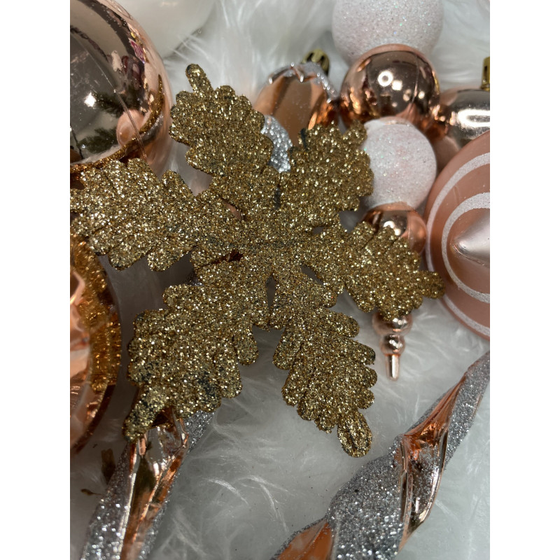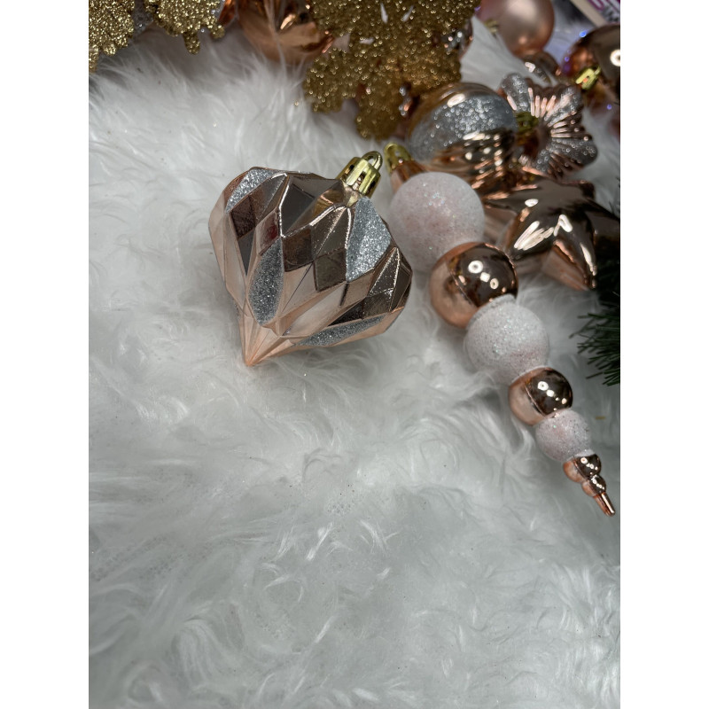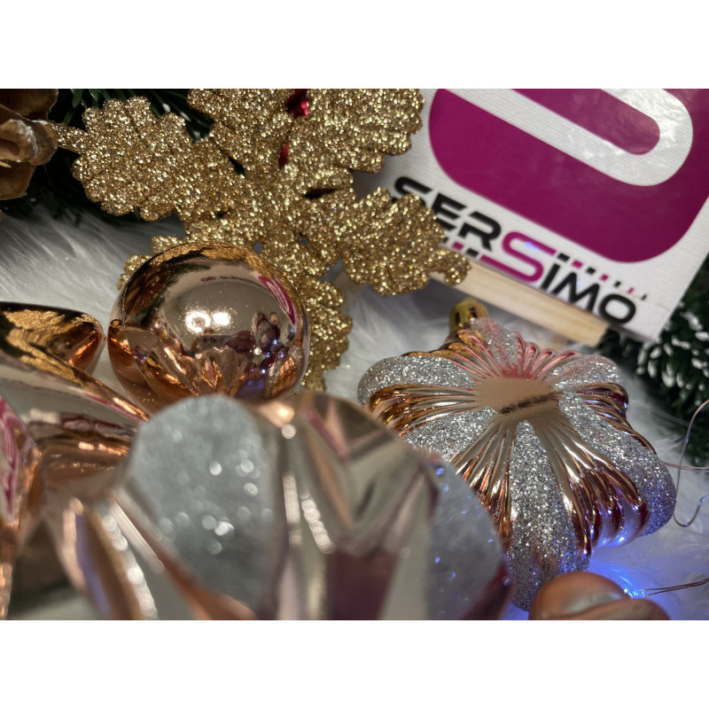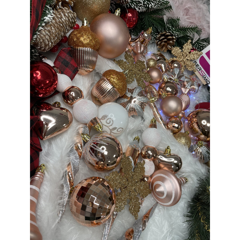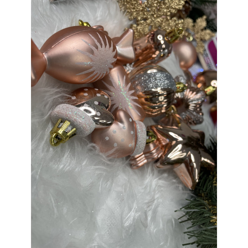 Globurile si decoratiunile dintr-un set cu o singura culoare va vor permite sa creati un decor minunat pentru brad. Arata frumos in timpul zilei si dupa intuneric, insotite de iluminat festiv. Setul include snururi care va permit sa agatati globurile rapid si usor in locul dorit. Designul din plastic creste siguranta datorita materialului incasabil. Alegerea lor in locul globurilor de sticla va contribui la siguranta celor mici din casa. Diversele dimensiuni va permit sa creati modele inedite de aranjare a bradului de Craciun.