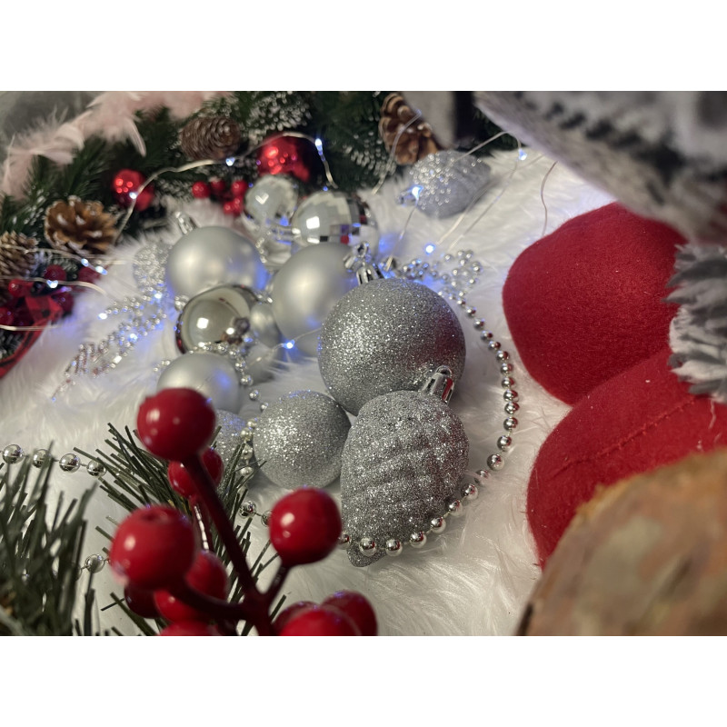 Globurile si decoratiunile dintr-un set cu o singura culoare va vor permite sa creati un decor minunat pentru brad. Arata frumos in timpul zilei si dupa intuneric, insotite de iluminat festiv. Setul include snururi care va permit sa agatati globurile rapid si usor in locul dorit. Designul din plastic creste siguranta datorita materialului incasabil. Alegerea lor in locul globurilor de sticla va contribui la siguranta celor mici din casa. Diversele dimensiuni va permit sa creati modele inedite de aranjare a bradului de Craciun.