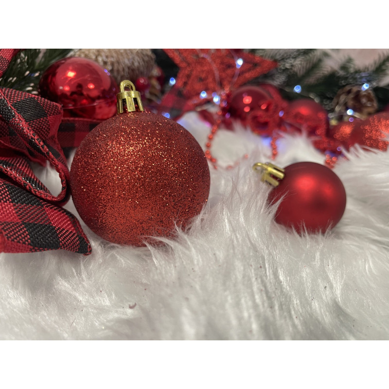 Globurile si decoratiunile dintr-un set cu o singura culoare va vor permite sa creati un decor minunat pentru brad. Arata frumos in timpul zilei si dupa intuneric, insotite de iluminat festiv. Setul include snururi care va permit sa agatati globurile rapid si usor in locul dorit. Designul din plastic creste siguranta datorita materialului incasabil. Alegerea lor in locul globurilor de sticla va contribui la siguranta celor mici din casa. Diversele dimensiuni va permit sa creati modele inedite de aranjare a bradului de Craciun.