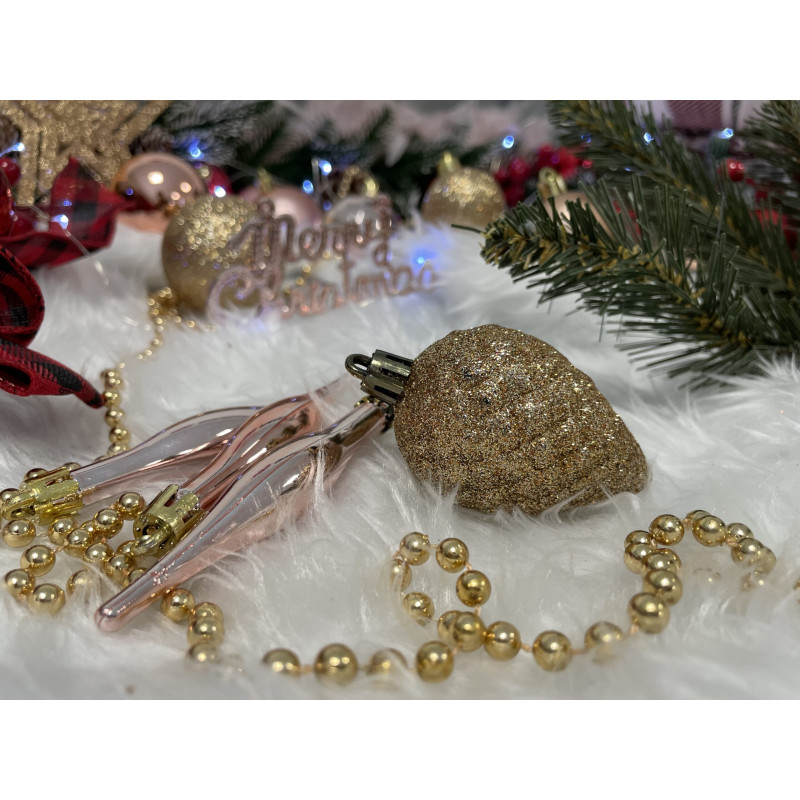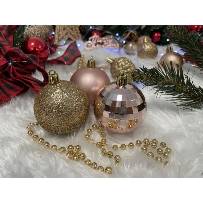 Globurile si decoratiunile dintr-un set cu o singura culoare va vor permite sa creati un decor minunat pentru brad. Arata frumos in timpul zilei si dupa intuneric, insotite de iluminat festiv. Setul include snururi care va permit sa agatati globurile rapid si usor in locul dorit. Designul din plastic creste siguranta datorita materialului incasabil. Alegerea lor in locul globurilor de sticla va contribui la siguranta celor mici din casa. Diversele dimensiuni va permit sa creati modele inedite de aranjare a bradului de Craciun.