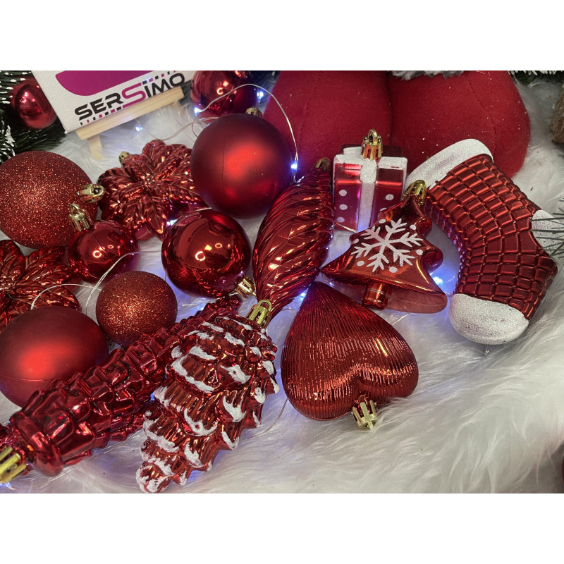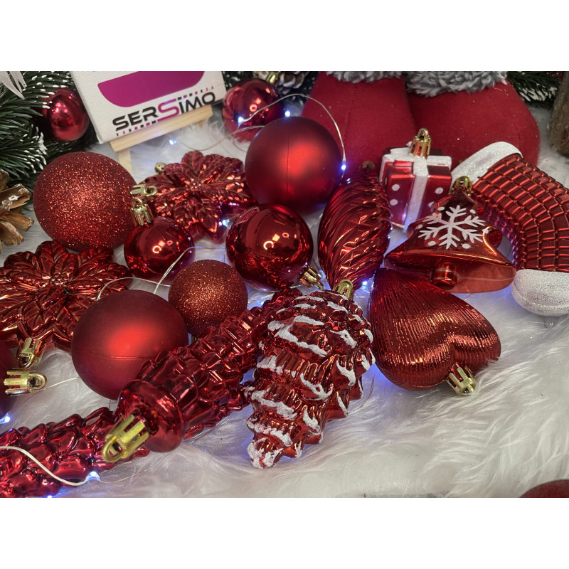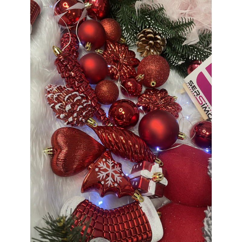 Globurile si decoratiunile dintr-un set cu o singura culoare va vor permite sa creati un decor minunat pentru brad. Arata frumos in timpul zilei si dupa intuneric, insotite de iluminat festiv. Setul include snururi care va permit sa agatati globurile rapid si usor in locul dorit. Designul din plastic creste siguranta datorita materialului incasabil. Alegerea lor in locul globurilor de sticla va contribui la siguranta celor mici din casa. Diversele dimensiuni va permit sa creati modele inedite de aranjare a bradului de Craciun.
