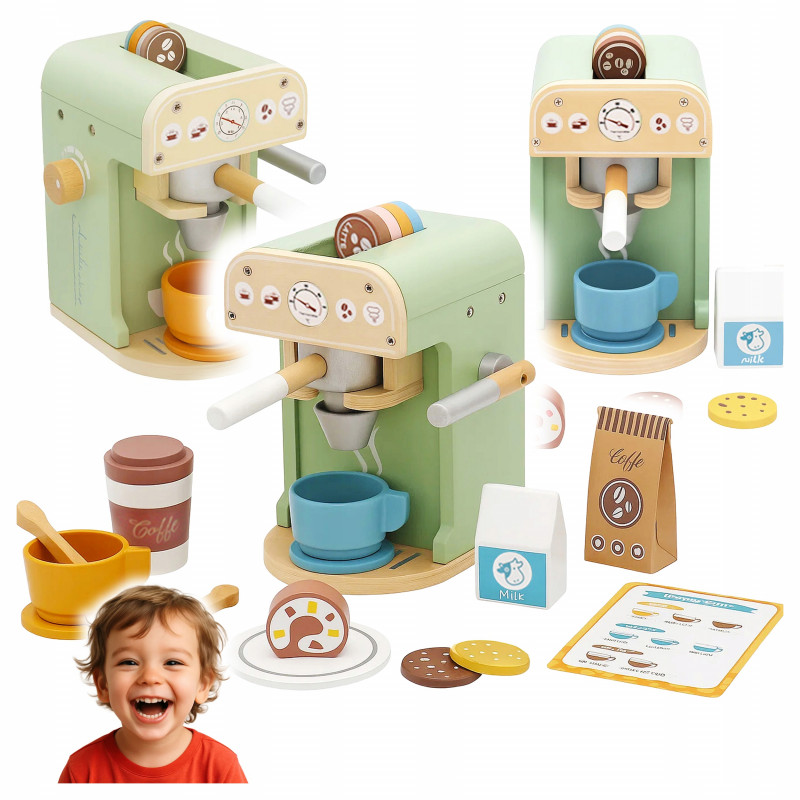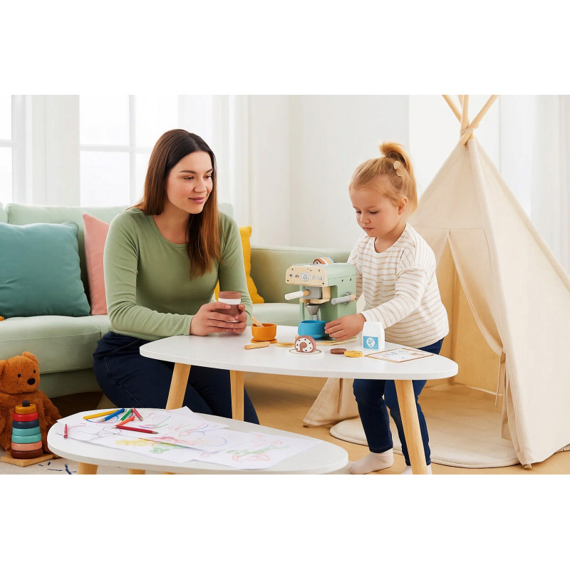 Scurta descriere: Setul de joaca tip cafenea din lemn este perfect pentru dezvoltarea imaginatiei si creativitatii copiilor. Cu un design realist si accesorii variate, cei mici pot intra in rolul unui barista si pot recrea scene din viata de zi cu zi. Elementele sunt realizate din lemn, fiind rezistente si sigure pentru utilizare.