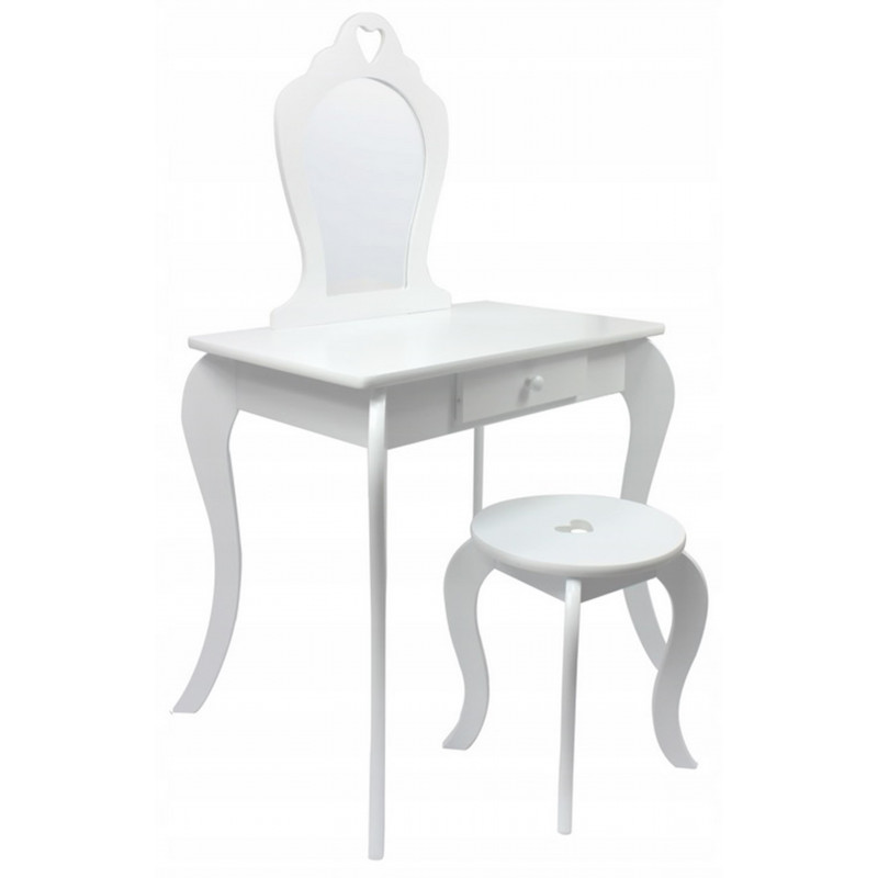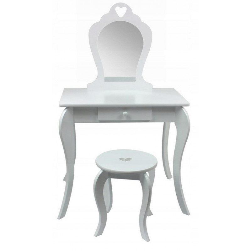 Viseaza si micuta ta la propria masuta de toaleta? Masuta noastra de toaleta pentru fete este solutia perfecta pentru micile printese. Cu siguranta va satisface cerintele celor mai exigente domnisoare. Ideal pentru camera unui copil. De asemenea, ca un decor interesant. Masuta de toaleta va fi cu siguranta pe placul oricarei fetite care adora sa se imbrace si sa-si imite mama atunci cand se machiaza. SPECIFICATII: Oglinda de siguranta (care nu este din sticla)Stil de epoca Fabricat din placi de mobilier MDFSertar spatios Decor delicat Scaun inclus Poate fi montat pe perete Dimensiunile indicate in imaginea de mai jos