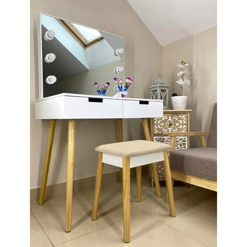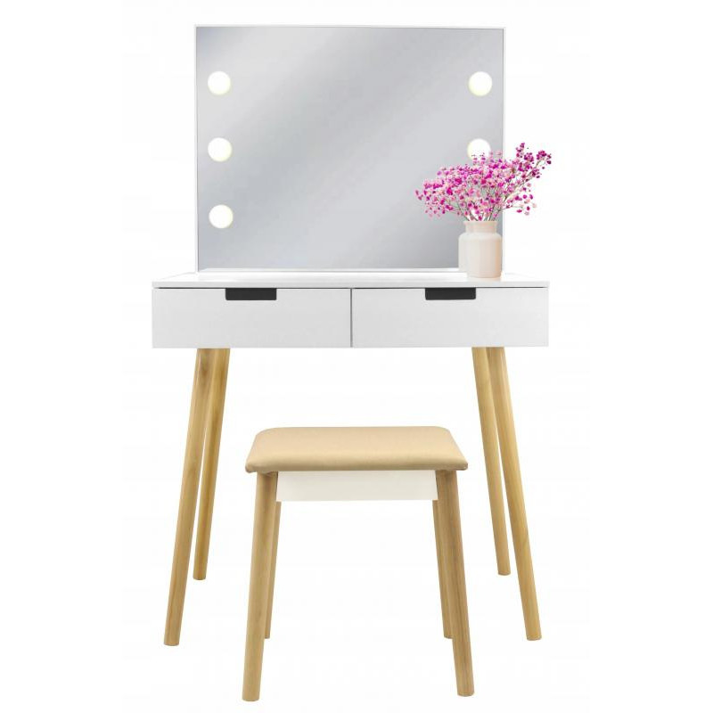 Caracteristici si functii: Masa de toaleta eleganta in stil alb6 becuri LEDSertarele ofera o multime de spatiu de depozitare pentru produsele cosmetice Oglinda mare