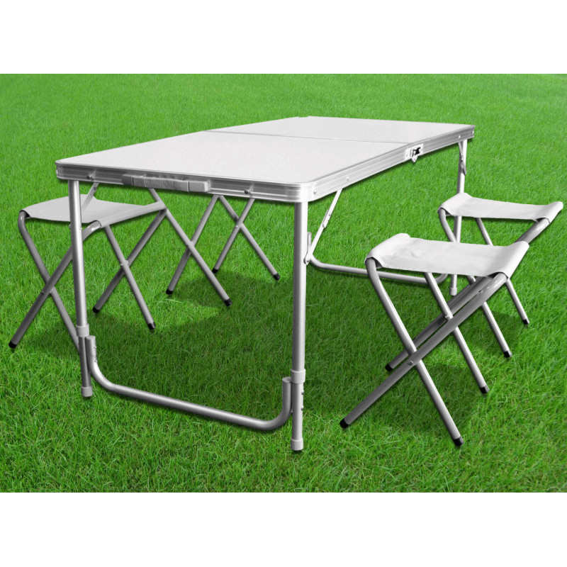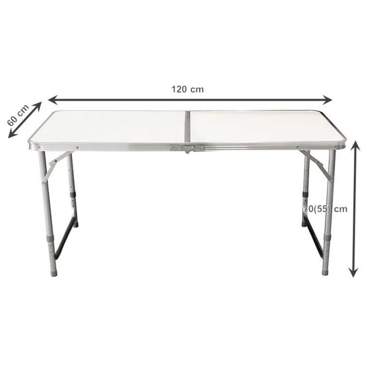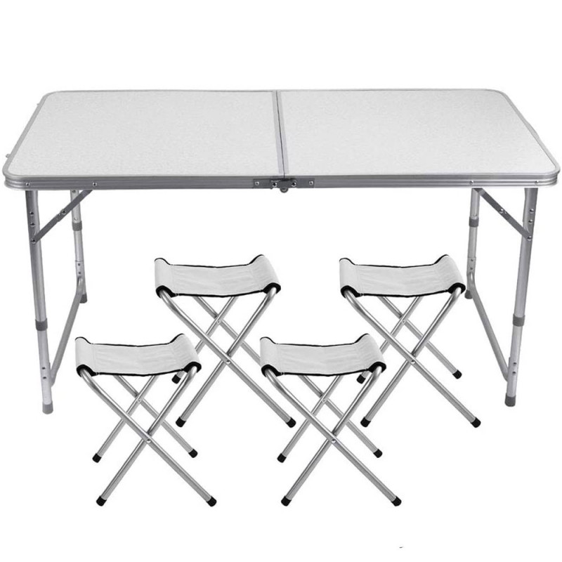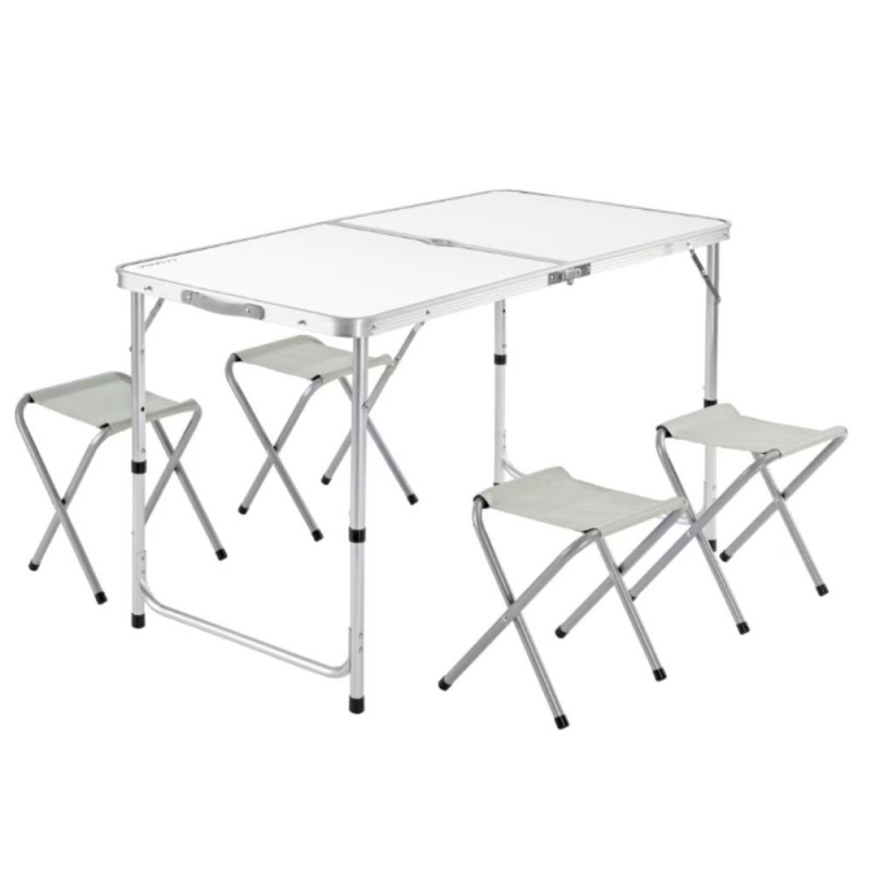 Acest set este format din 1 masa pliabila si 4 scaune pliabile. Datorita manerului practic de transport si inaltimii reglabile a mesei, acest set este perfect pentru utilizari in bucatarii, pe terase, in gradini, sau la picnicuri si excursii de camping.Setul este usor in greutate. Manerul de transport face foarte usor sa transportati masa. Inaltimea mesei poate fi reglata la 55 cm, 62 cm si 70 cm. Datorita structurii robuste, aceasta masa are o capacitate mare de incarcare de pana la 30 - 50 kg (in functie de distribuirea greutatii). Datorita cadrului metalic si a mesei robuste, setul este extrem de stabil si durabil.Scaunele incluse sunt fabricate din tuburi din otel durabile si tesatura oxford de inalta calitate cu acoperire din PVC.Masa si scaunele sunt ambele pliabile pentru transport si depozitare usoara. Setul include 1 masa si 4 scaune. Specificatii :Masa: