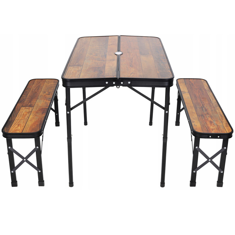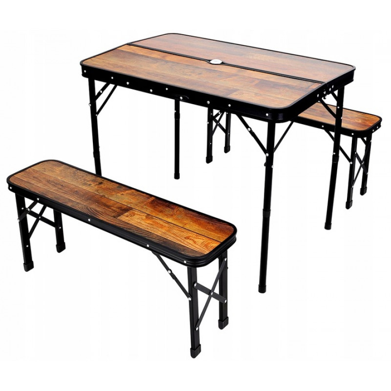 Utilizare prevazuta: 1-4 persoane Aceasta masa turistica cu 2 banci este baza pentru excursia dvs. de succes in camping, vacanta sau gradina. De asemenea, va functiona bine pe un balcon mic sau pe malul lacului cand copiilor le este foame.Masa are un blocaj special care impiedica deschiderea de la sine, si tuburi rezistente cu profile de otel care pot sustine o sarcina de pana la 30 kg.Inaltimea reglabila de 40 sau 70 cm va permite sa il utilizati la un nivel selectat adaptat circumstantelor. O gaura speciala in centrul mesei va va permite sa montati o umbrela mica care sa va protejeze de soare.