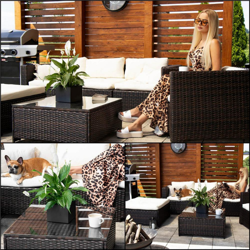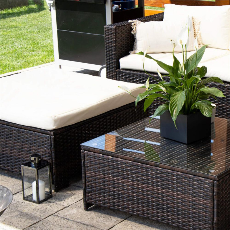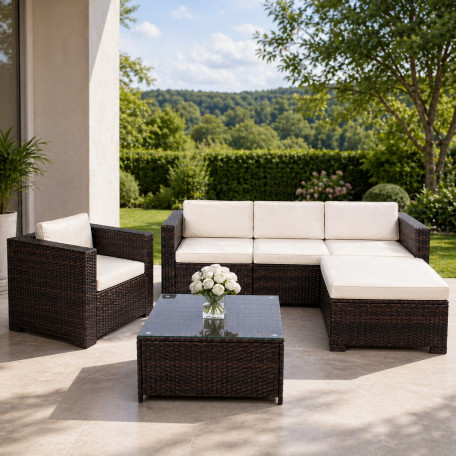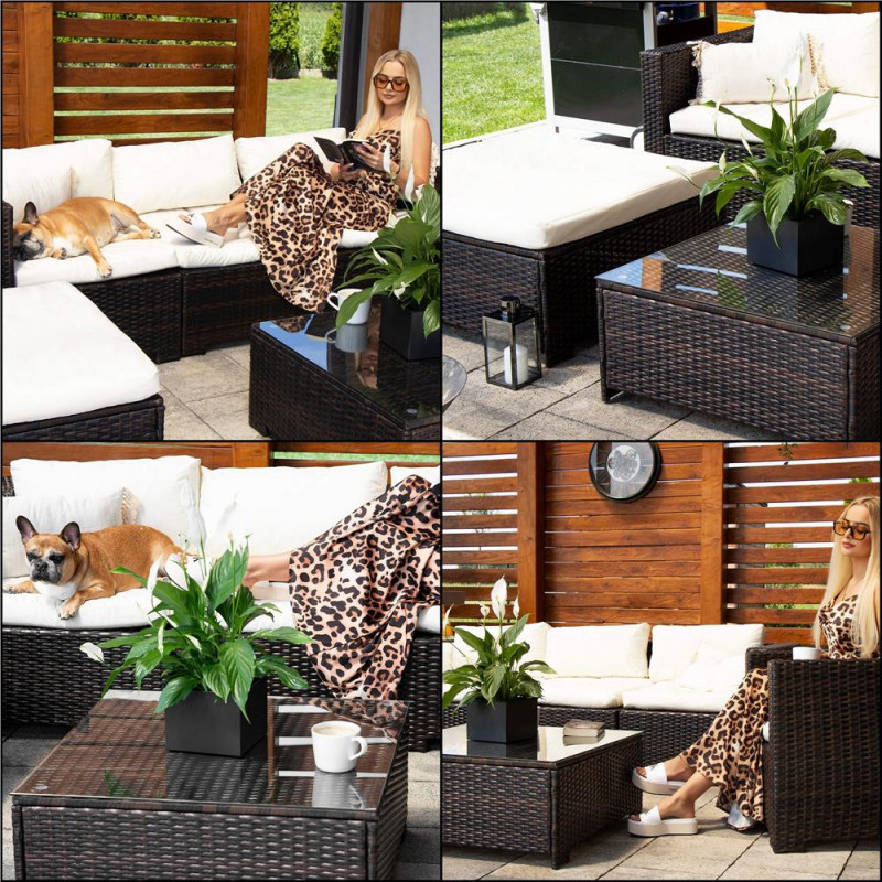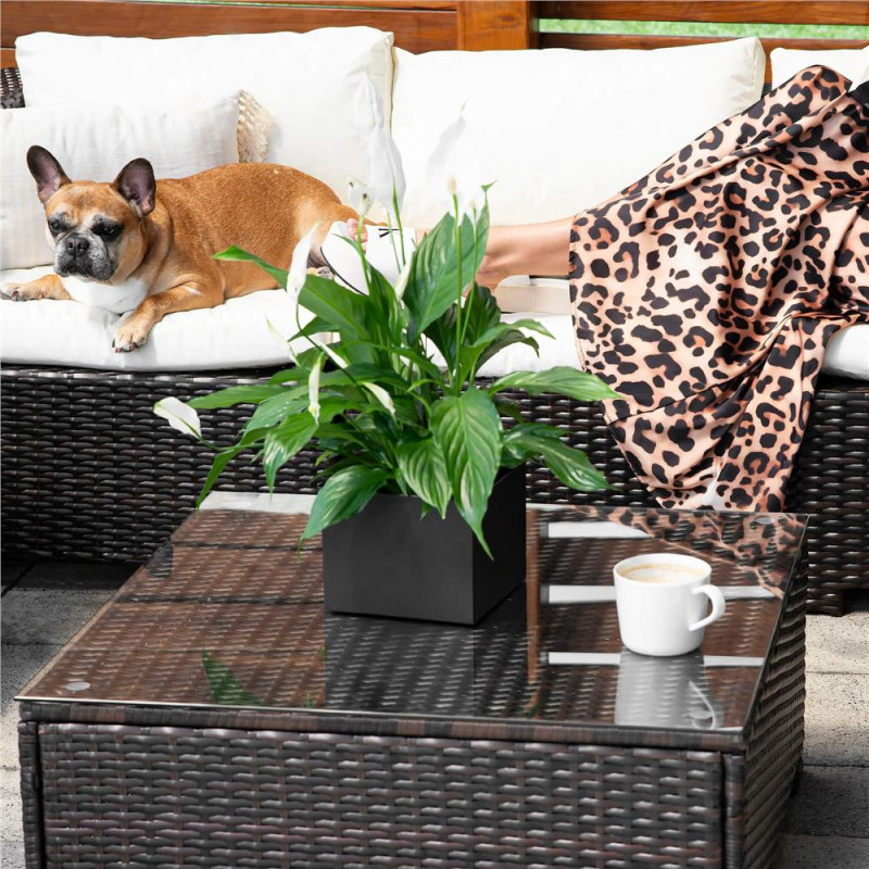Scurta descriere Setul de mobilier pentru gradina din technorattan este alegerea ideala pentru relaxare in aer liber. Designul modular permite configurarea flexibila in functie de spatiu, iar pernele confortabile si masa cu blat din sticla completeaza perfect zona de lounge. Este potrivit pentru terasa, gradina sau balcon.