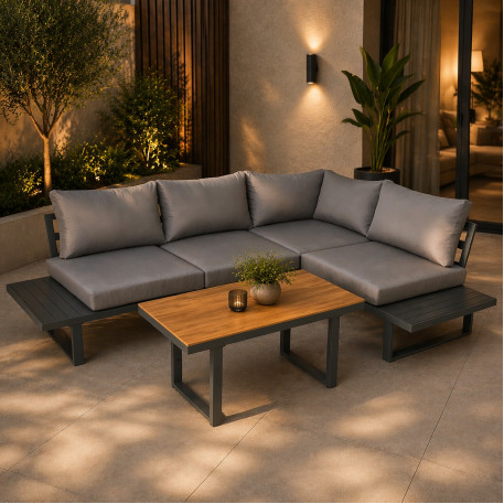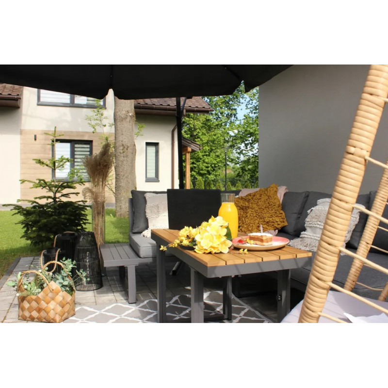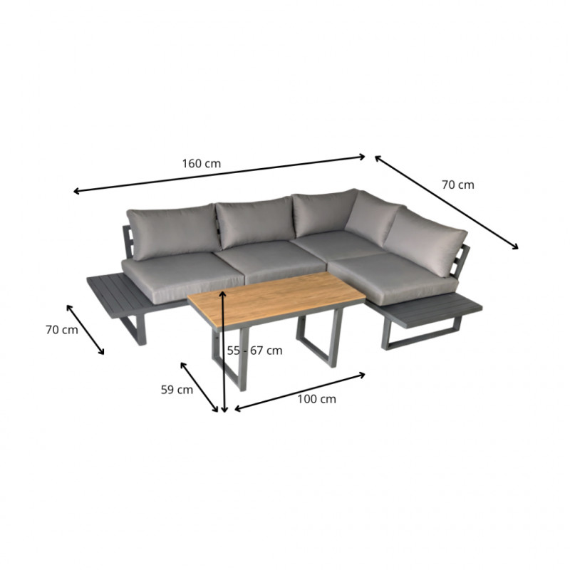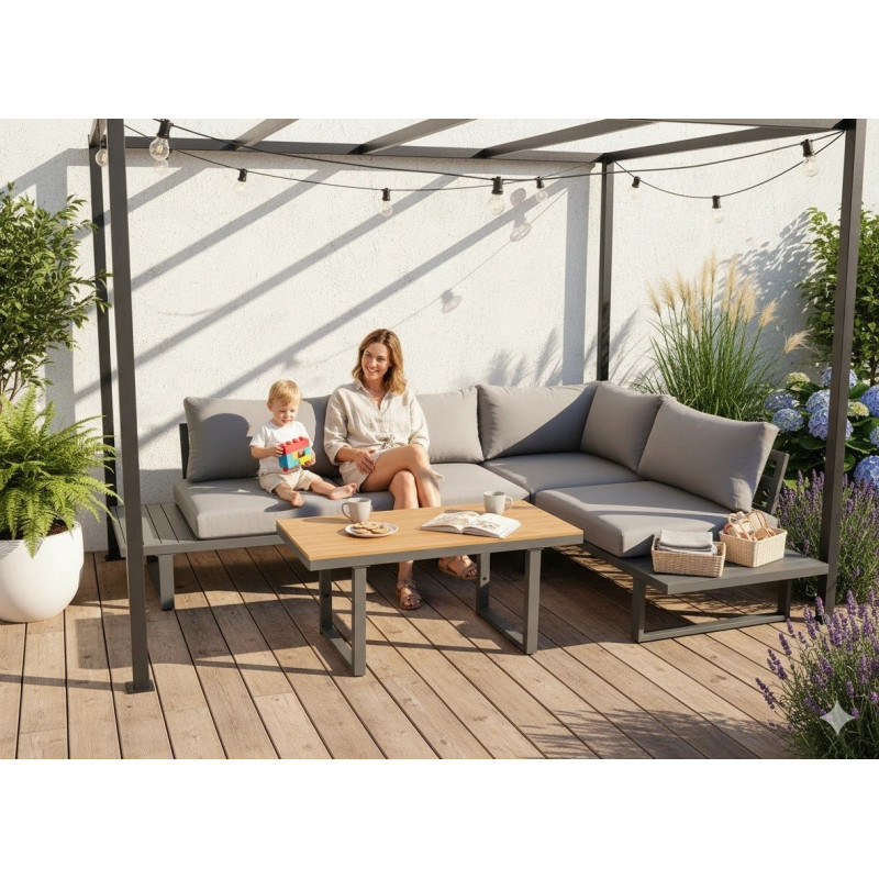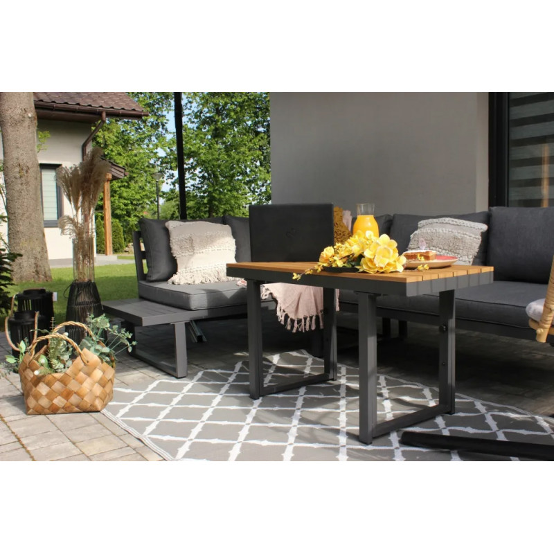 Scurta descriere Setul de mobilier Bogota este alegerea perfecta pentru un spatiu de relaxare modern in gradina sau pe terasa. Format din doua canapele modulare si o masa reglabila pe inaltime, iti ofera flexibilitate si confort in utilizare. Designul simplu si elegant, combinat cu materialele rezistente, il face ideal pentru utilizare zilnica in exterior.