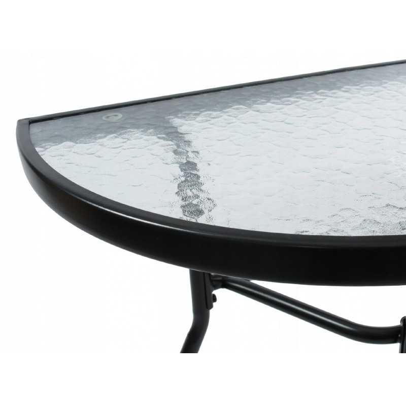 Dimensiunea cadrului: 22 mm diametru Sticla calita 5mm Scaunele sunt pliabile.Dimensiunea scaunelor: 42x44x84 cm