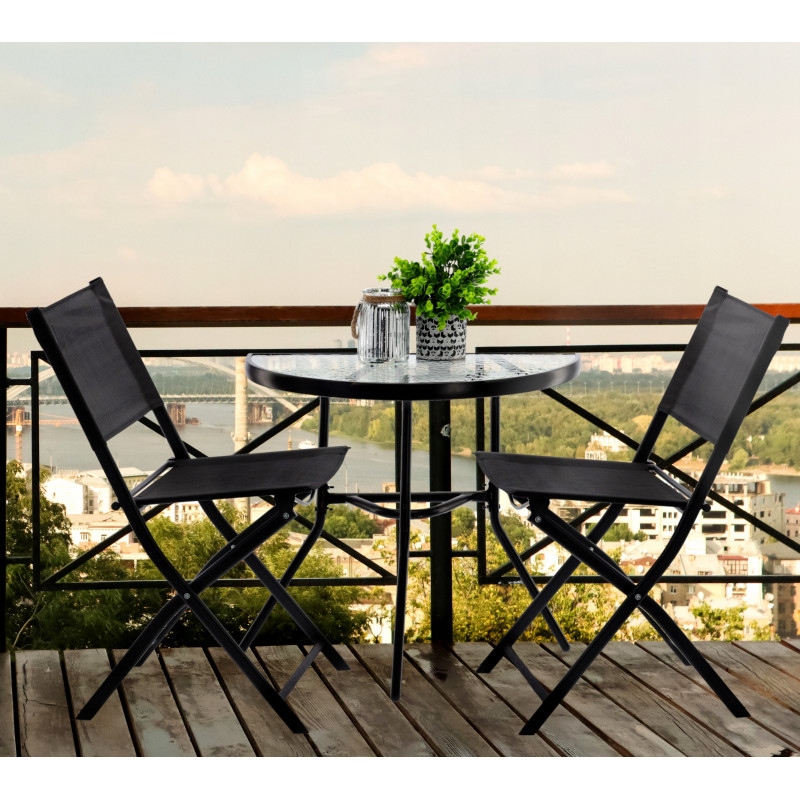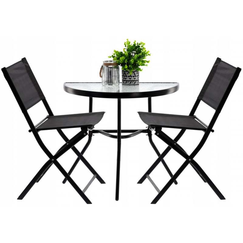 Setul de mobilier de gradina este ideal pentru cei care cauta o combinatie de clasic si elegant. Forma simpla si carourile elegante vor incanta pe toata lumea. Se potriveste in orice spatiu - pe balcon, pe terasa sau in gradina. Masa are sticla calita cu o textura de mozaic transparent va permite cu siguranta multi ani de utilizare. Scaunele au o constructie sudata care nu se zgarie, acoperita cu pulbere.Compozitia setului:1 x masa2 x scaun pliabil