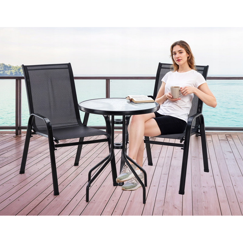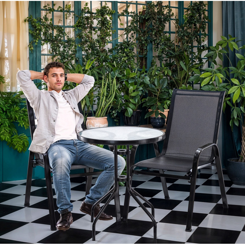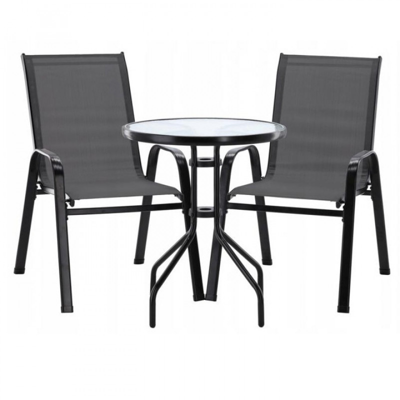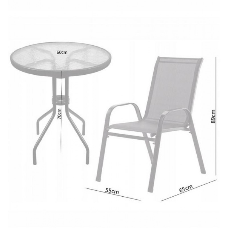 Setul de mobilier este perfect pentru persoanele care cauta o combinatie intre clasic si elegant. O forma simpla si o impletitura eleganta va incanta pe toata lumea. Se potriveste in orice spatiu - balcon, terasa sau gradina. Masa are sticla calita cu o textura mozaic transparenta (pentru auto-asamblare), ceea ce va permite cu siguranta multi ani de utilizare.Invelisul este realizat din impletitura densa intinsa peste cadru.