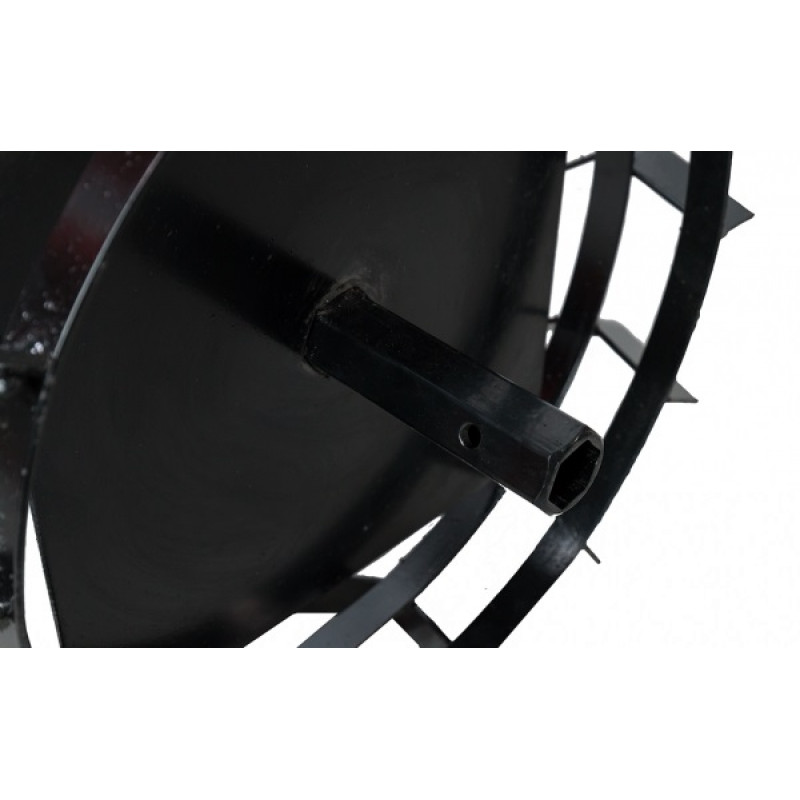 Set roti metalice 40 cm pentru motocultor cu ax hexagonal cu un diametru interior de 23 de mm.