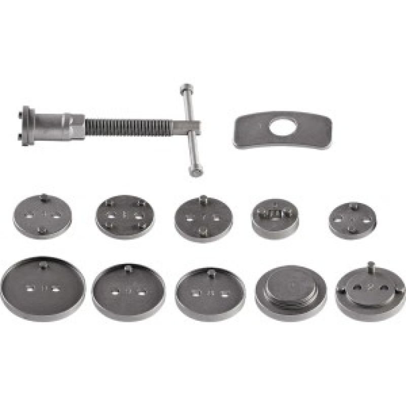 Set de separatoare manuale de etrier de frana, 12 buc. 11-123 de la NEO este un set format dintr-o presa cu surub si un set de discuri, care permite inlocuirea pistoanelor la o gama larga de masini. Conceput pentru: Citroen: Xm, Xantia; Alfa Romeo; Audi; Austin; Austin; BMW; Honda; Jaguar; MB; Mitsubishi; Nissan; Rover; Toyota; VW; Ford; Mazda; Subaru; Saab; Rover, GM, Peugeot, Renault, Mazda si altele. Kitul rationalizeaza si usureaza munca. Oferit intr-o geanta practica pentru depozitare si transport convenabil. Setul de separatoare manuale NEO este recomandat pentru utilizare in atelierele de reparatii auto.