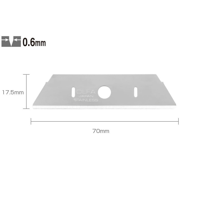 Lame din oțel inoxidabil cu vârf rotunjit pentru “SK-12” și alte cuțite de siguranță OLFA. 10 lame într-o carcasă din plastic, ambalate.