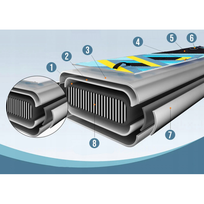 - Constructie durabila – realizata din tehnologie Drop Stitch , rezistenta la uzura si impact.