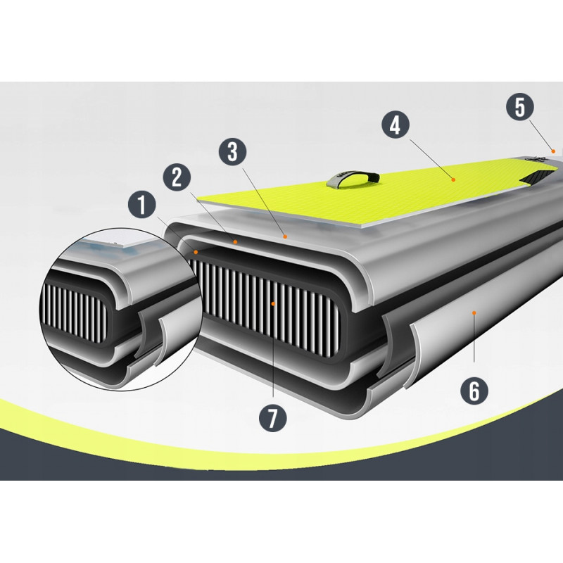 - Constructie durabila – realizata din tehnologie Drop Stitch , rezistenta la uzura si impact.