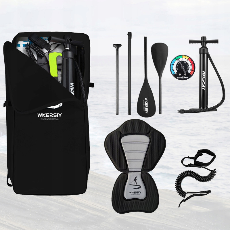 Rucsac pentru transport Acest set complet SUP este ideal pentru relaxare pe apa, fie ca alegi sa te plimbi pe lacuri linistite sau sa explorezi rauri si mari. Perfect pentru oricine doreste sa experimenteze libertatea sporturilor nautice!