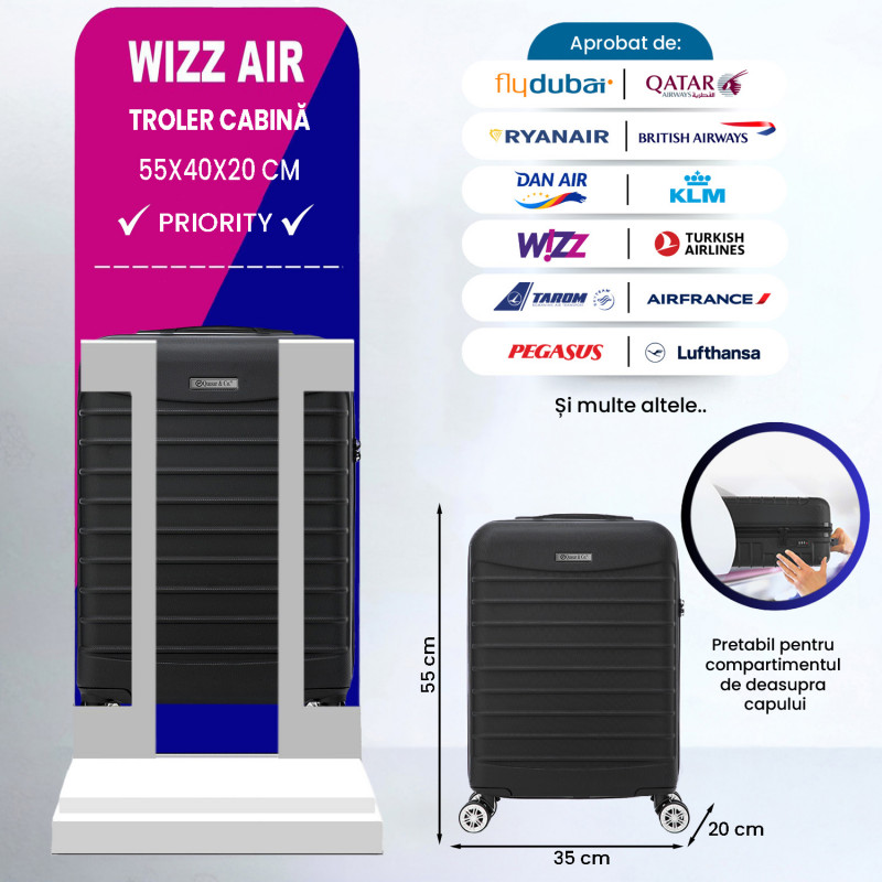 Priority Pack by Quasar & Co.® – Set Troler + Rucsac pentru zboruri fără griji
