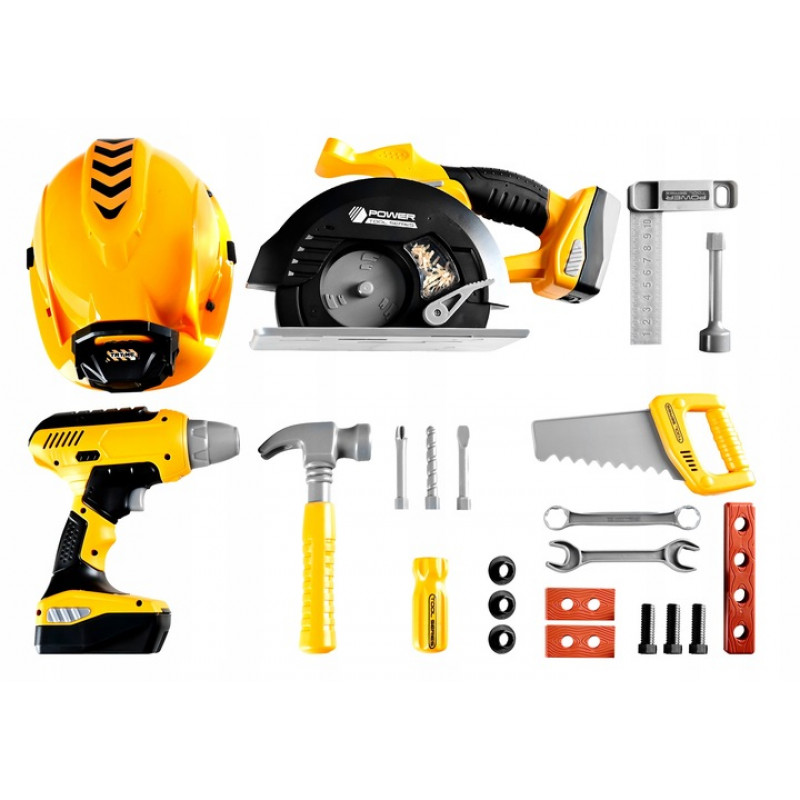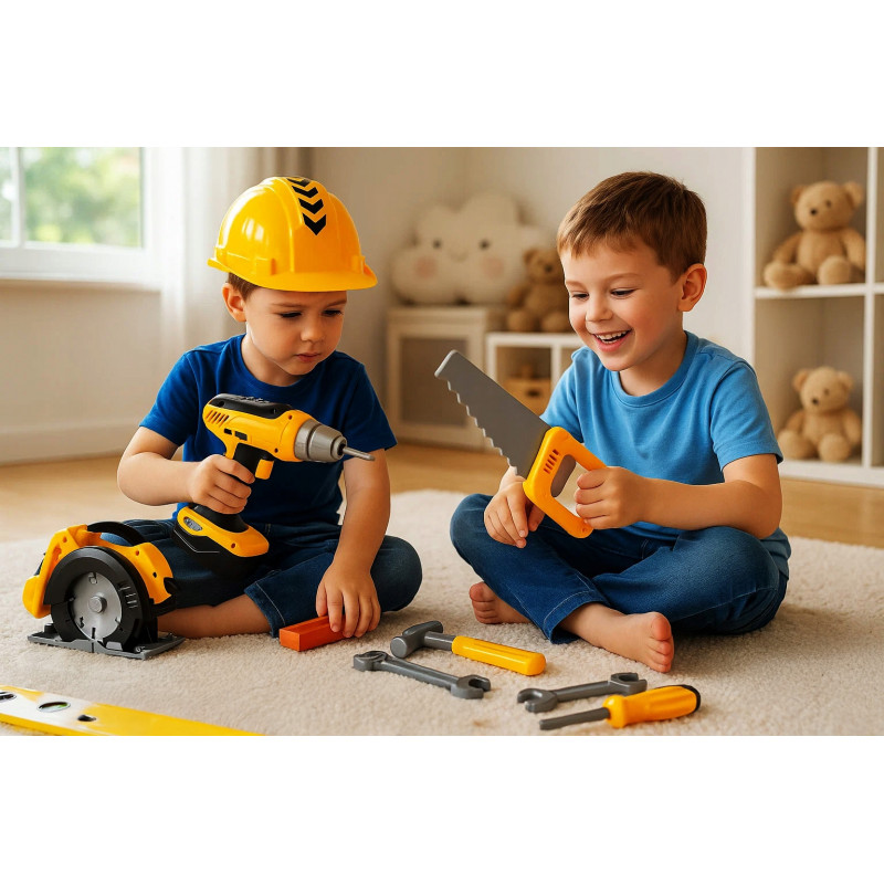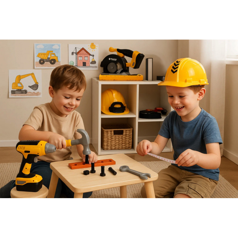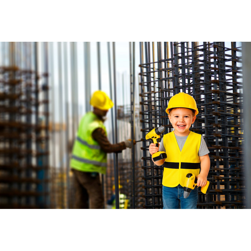 Scurta descriere Setul de unelte pentru copii este perfect pentru micii constructori care adora sa imite activitatile adultilor. Include bormasina si fierastrau alimentate cu baterii, oferind o experienta realista de joaca. Casca luminata si vesta de constructor adauga un plus de distractie, iar accesoriile permit insurubarea si construirea in siguranta.