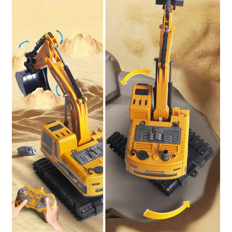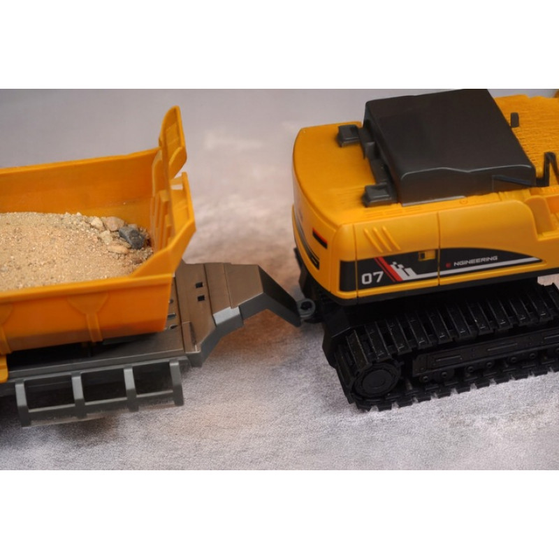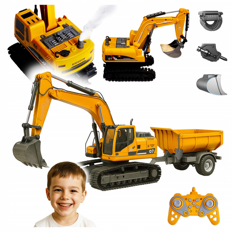 Scurta descriere Setul RC cu excavator si basculanta ofera o experienta realista de joaca, perfect pentru copiii pasionati de utilaje de constructii. Vehiculele sunt dotate cu lumini, miscare si efect de abur, iar atasamentele interschimbabile pentru excavator permit diferite scenarii de lucru. Telecomanda inclusa faciliteaza controlul usor, iar jocul dezvolta coordonarea si imaginatia celor mici.