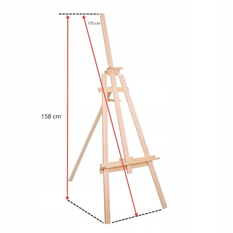 Adancime totala: 89 cm Un sevalet din lemn, stabil, va va permite sa creati un loc ideal pentru a va crea propriile lucrari de arta folosind vopsele, creioane sau markere. Produsul este potrivit atat pentru copii, cat si pentru adulti. Atunci cand alegem un sevalet din lemn, alegem cea mai convenabila structura pentru vopsire. Abilitatea de a plasa o panza sau carduri pe suprafata acesteia face crearea propriei lucrari private sa fie foarte confortabila si transparenta. Marginea usor ridicata previne alunecarea unui obiect plasat pe suprafata lui. In plus, puteti regla manerul superior si inaltimea suportului de panza, precum si unghiul sevaletului. Sevalet este excelent si pentru expozitii. Diverse picturi vor arata grozav pe suprafata sa si vor decora interiorul. Realizat din lemn, produsul arata frumos si este un decor in sine.