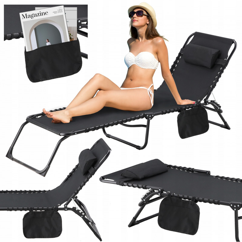 Descopera confortul suprem in aer liber cu acest sezlong pliabil cu spatar reglabil , ideal pentru gradina, plaja, terasa sau camping. Datorita designului compact si portabil , este usor de transportat si depozitat. Cadrul din otel vopsit electrostatic este rezistent la coroziune si sustine pana la 120 kg , oferind stabilitate si durabilitate. Spatarul este ajustabil, iar perna inclusa se poate fixa in pozitia dorita. Buzunarul lateral este perfect pentru telefon, carte sau ochelari de soare.