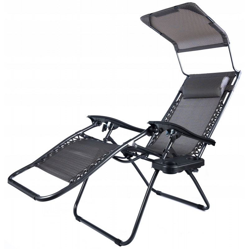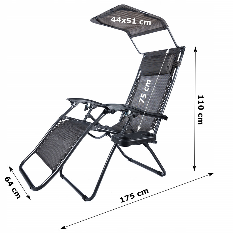 Dimensiuni copertina: 46 x 51 cm Sezlongul este proiectat astfel incat picioarele indoite sa fie la nivelul inimii. In aceasta pozitie, corpul se odihneste si capata forta. Sezlongul este caracterizat prin siguranta, confort si comoditate. Captuseala este realizata din material rezistent Textoline, care asigura ca sezlongul este durabil si usor de intretinut. Calitate ridicata. Piese metalice acoperite cu pulbere (anti-corozive), rezistente la conditiile meteorologice (ploaie, soare). Designul permite transferul fara maini de la pozitia asezat la pozitia culcat. Baldachinul poate fi indoit la 90 de grade. Sezlongul are atasata o perna pentru cap de 35x17x5 cm.