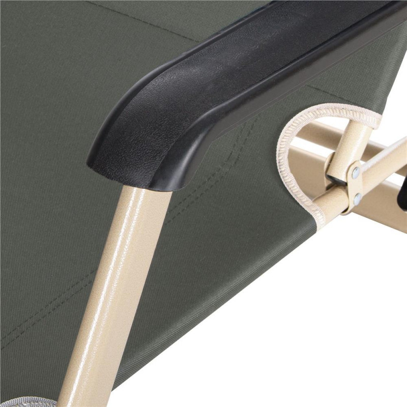 Parametrii: Structura metalica puternica acoperita cu pulbere Pozitia scaunului reglabila Pozitie pe jumatate asezat si culcat Tetiera ergonomica si moale Cotiere confortabile Elemente antiderapante Structura intarita Cadrul este protejat cu un strat anticoroziv Reglare suport pentru picioare in 3 pozitii