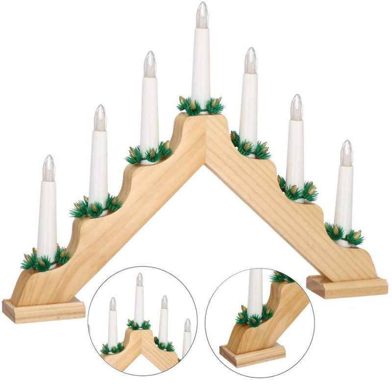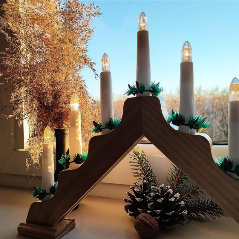Scurta descriere Sfesnicul decorativ LED cu 7 lumanari este un element elegant si practic pentru decorul de Craciun. Realizat din lemn si decorat cu coronite verzi si conuri naturale, ofera o lumina calda si placuta, creand o atmosfera festiva si primitoare. Functioneaza pe baterii, fiind usor de amplasat pe masa, pervaz sau semineu fara cabluri vizibile.