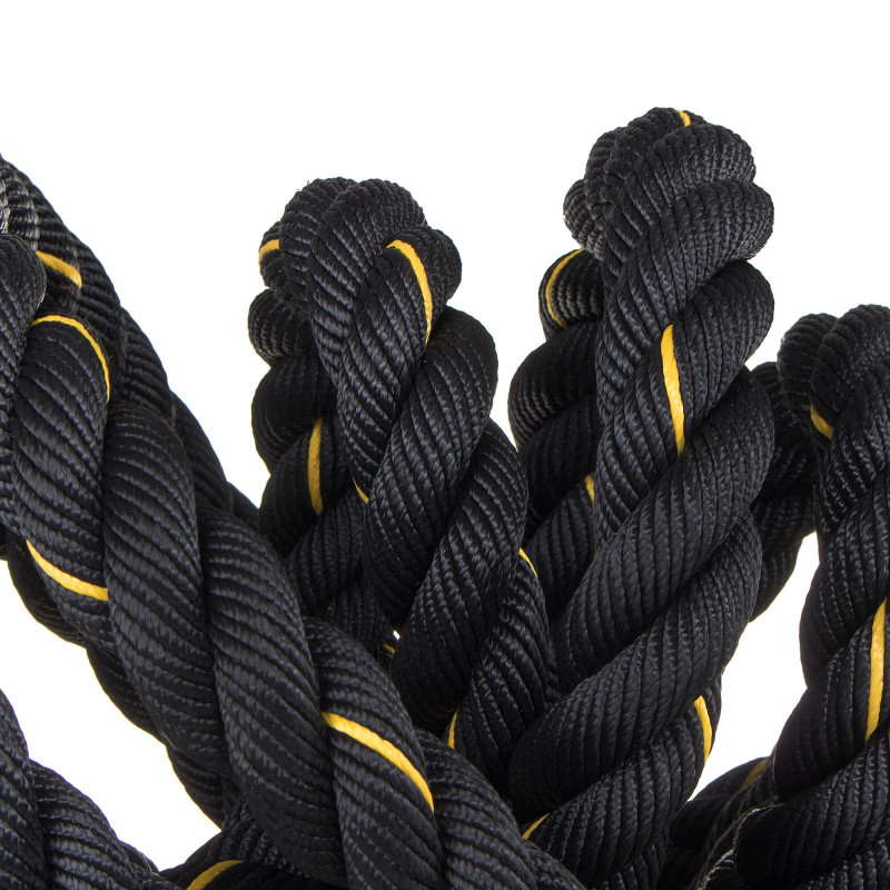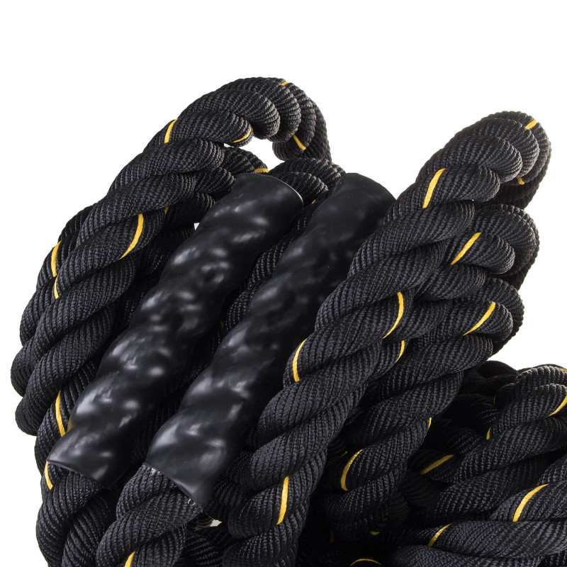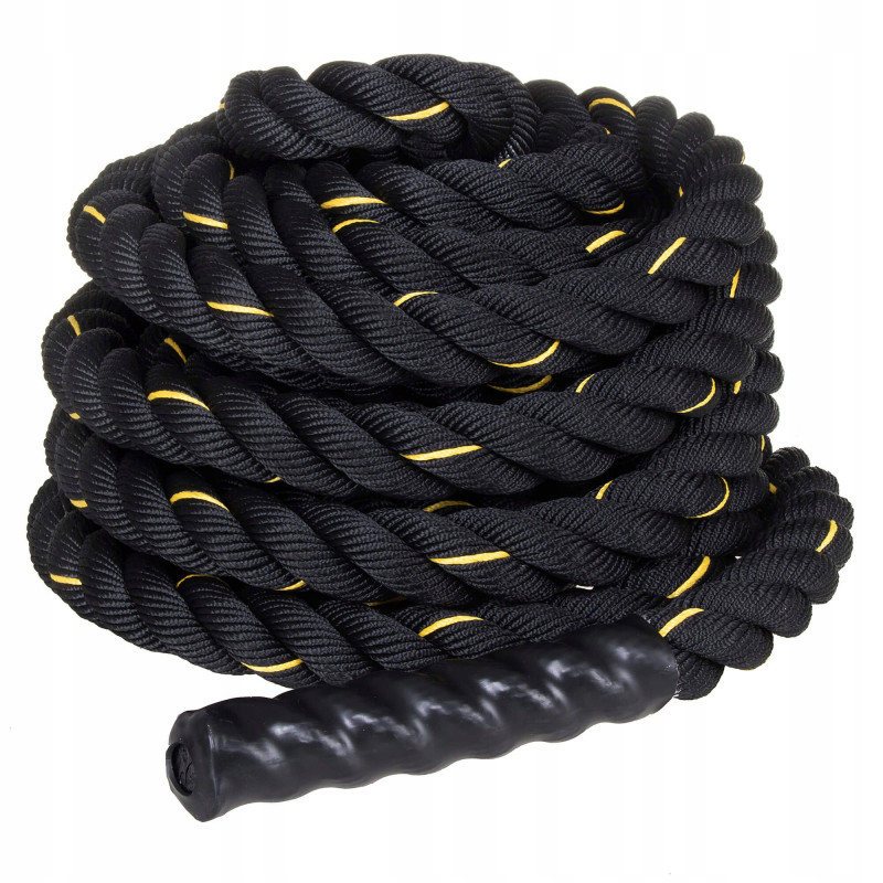 Sfoara de antrenament crossfit este un produs datorita caruia ne vom consolida rezistenta fizica si vom imbunatati conditiile de forta ale corpului nostru. Ne va ajuta sa ne mentinem in forma, imbunatatind starea noastra. Exercitiile cu utilizarea unei franghii crossfit sunt relativ grele, dar rezultatele obtinute sunt impresionante! Rezultate rapide Antrenamentul cu o franghie crossfit ofera un efort fizic foarte intens, cunoscut sub numele de antrenament pe intervale. Exercitiile cu utilizarea sa implica grupuri musculare precum, de exemplu, spatele, umerii sau pieptul. Primele efecte ale lucrului cu franghia se vad dupa aproximativ o luna. Maner confortabil Manerul finisat cu material antiderapant face produsul confortabil de utilizat si nu va aluneca din mana. Calitate superioara Produsul este fabricat din materiale de inalta calitate, prin urmare va servi utilizatorilor sai timp de multi ani. O tesatura puternica inseamna ca nu ies fibre din ea si chiar lovirea franghiei pe pamant nu afecteaza uzura sa rapida. Pentru incepatori si experti deopotriva Greutatea coardei este de aproximativ 7 kg, deci va fi potrivita pentru persoanele care isi incep aventura cu crossfit. Oamenii mai avansati vor fi, de asemenea, incantati sa adapteze produsul la exercitiile lor mai solicitante.Cu ajutorul sau, putem efectua multe exercitii diferite, variind de la fluturare alternativa sau dubla, prin lovirea solului si incheierea cu antrenamente mai complexe - de exemplu, genuflexiuni cu o franghie.